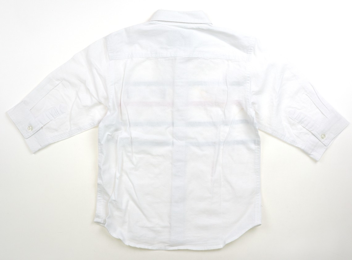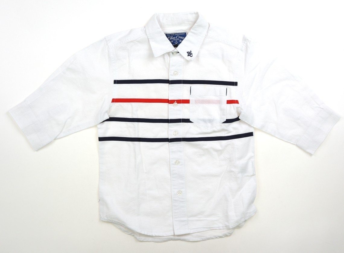 実際のサイズ表記はSS。半端丈袖です。背中に薄汚れ、襟にいくつか小さな汚れ、胸にシミが見受けられます。普段着にいかがでしょうか。
