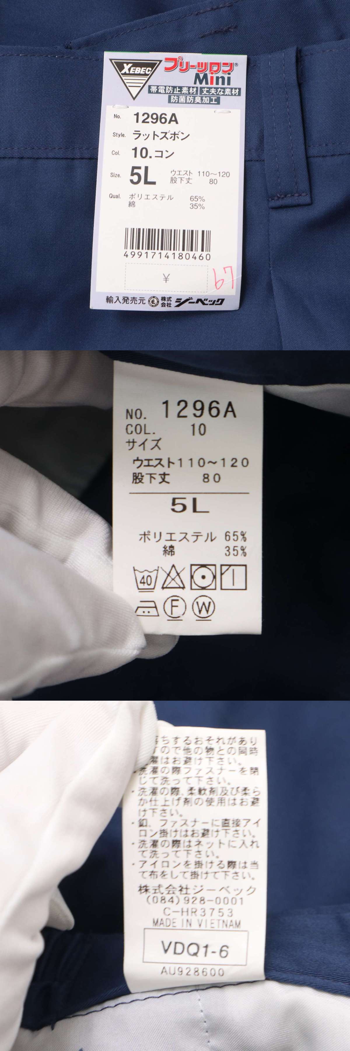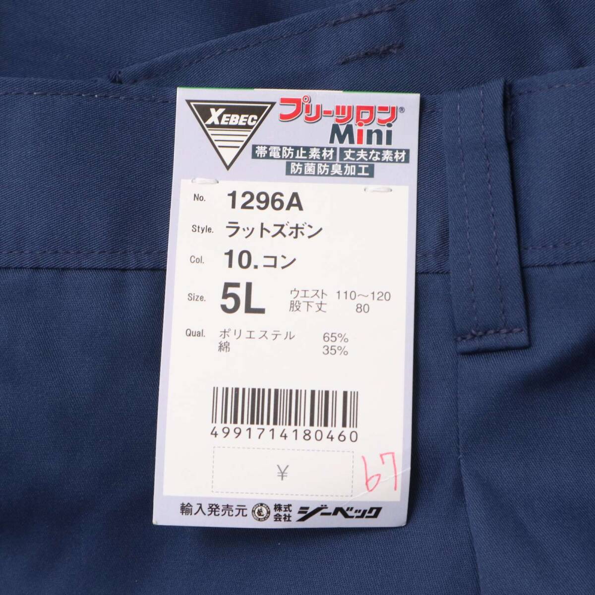 【新品 未使用】 XEBEC ジーベック 春夏 タック入り ラットズボン ワーク パンツ Sz.5L メンズ 紺 大きいサイズ 作業服