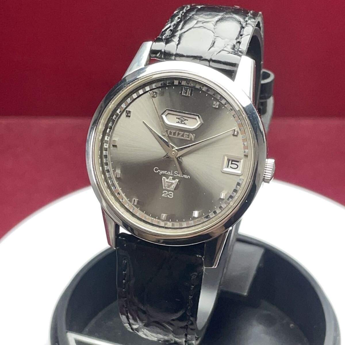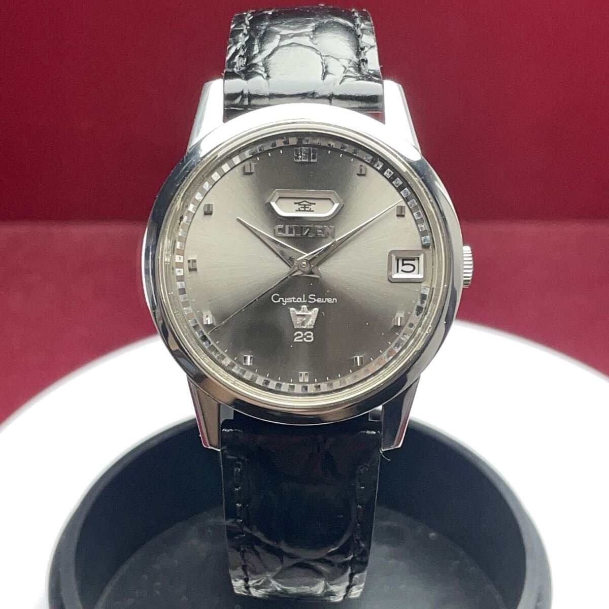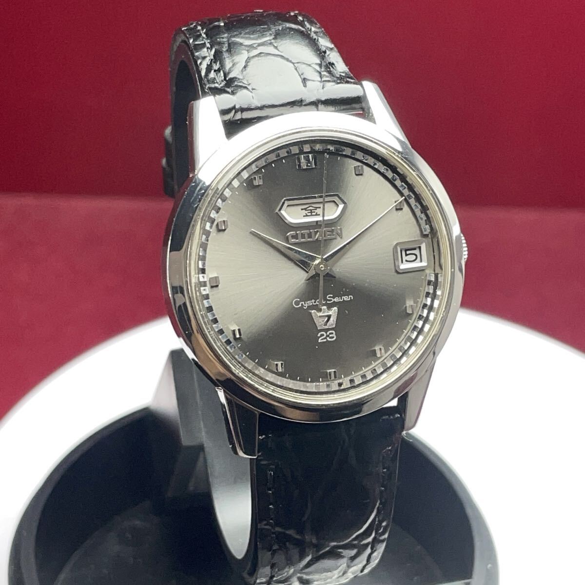 12時位置に曜日窓。3時位置に日付。6時位置に7マーク、12時位置にCITIZENロゴがアプライドされている実用的かつ洗練されたデザインです。