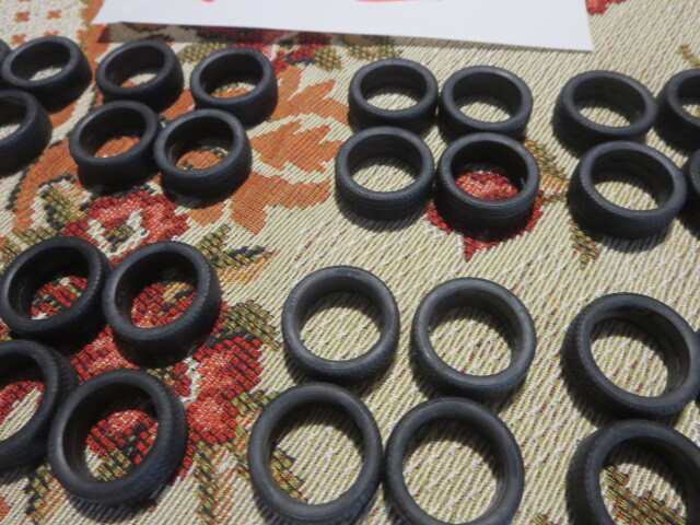 タイトルメーカー車種不明 1/24 プラモデル用のタイヤ 40個セット その2 直径 2.71㎝ 内径 2.02㎝ 厚さ 0.90㎝