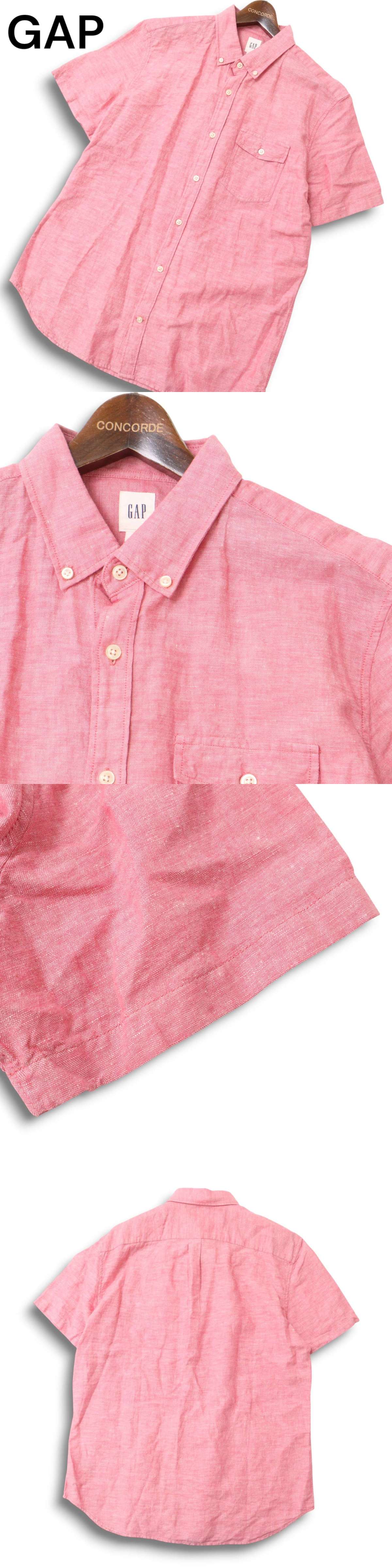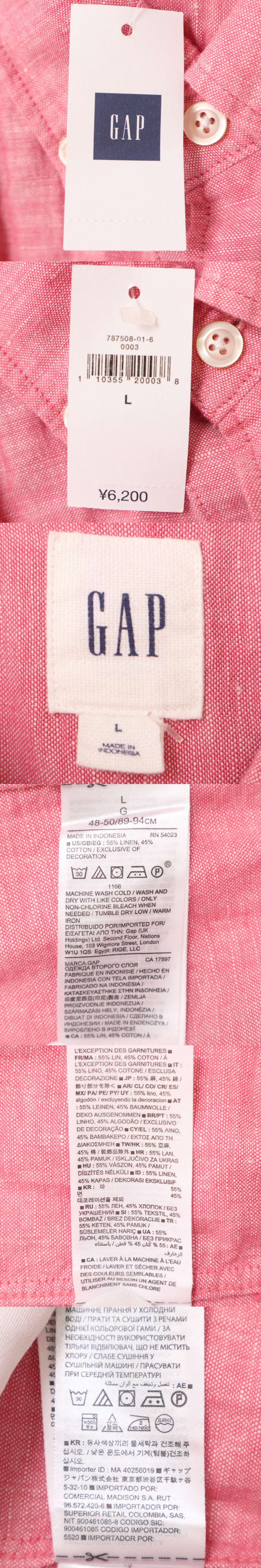 【新品 未使用】 GAP ギャップ 春夏★ 麻 リネン混 半袖 ボタンダウン シャツ Sz.L メンズ