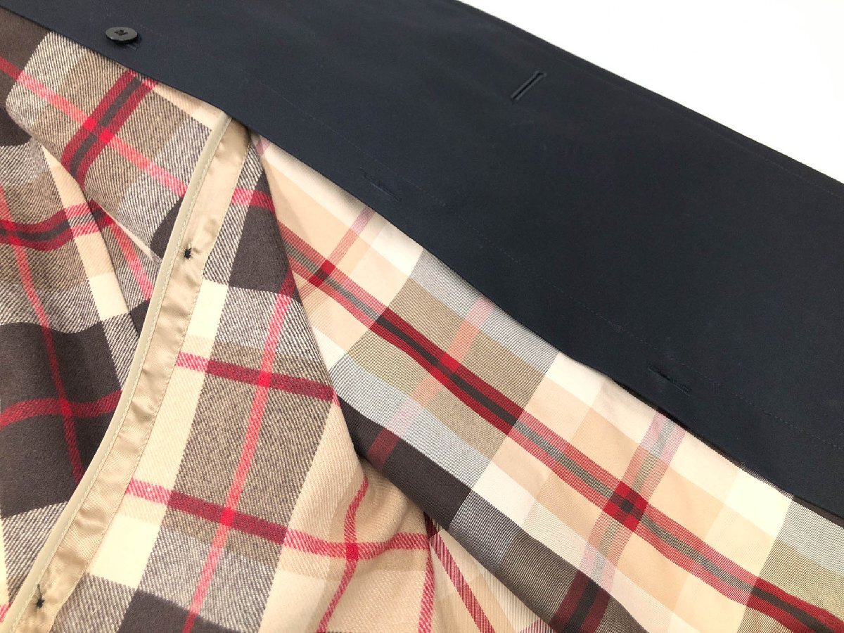 ・取り外し可能なチェック柄のウールライナーとベルト、襟が付いています。