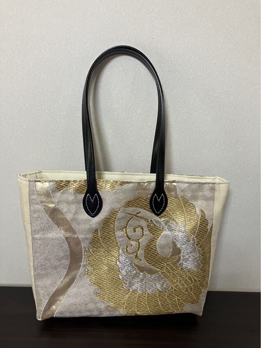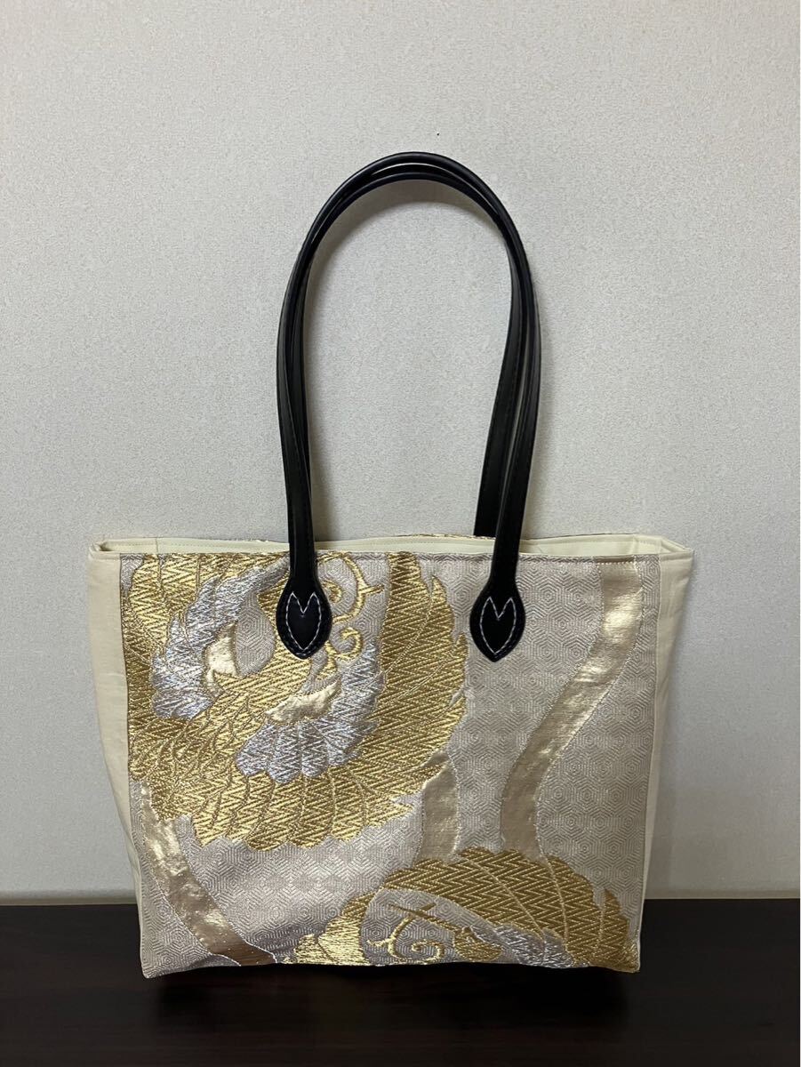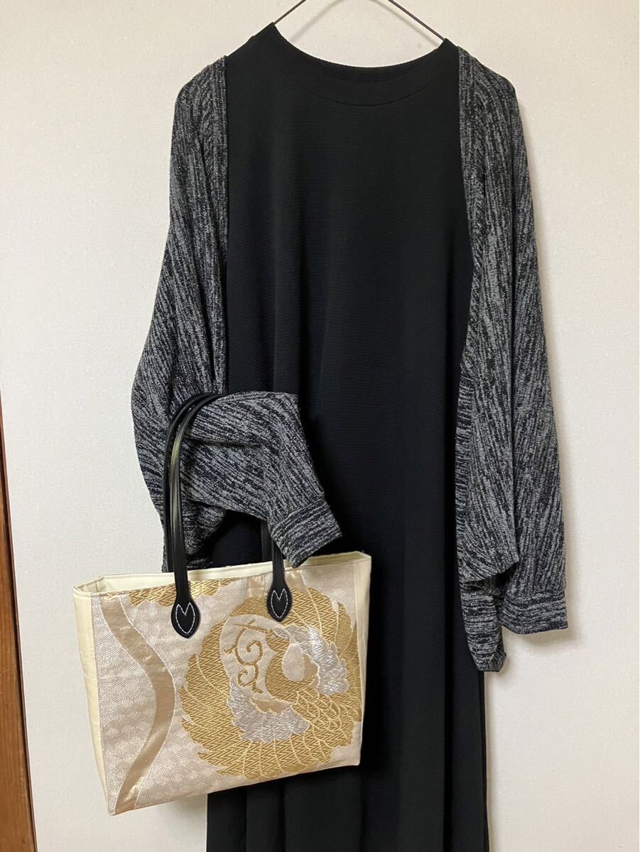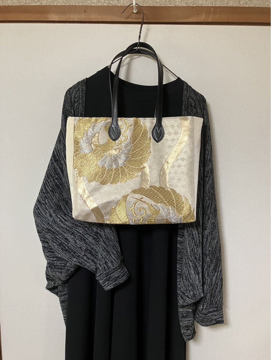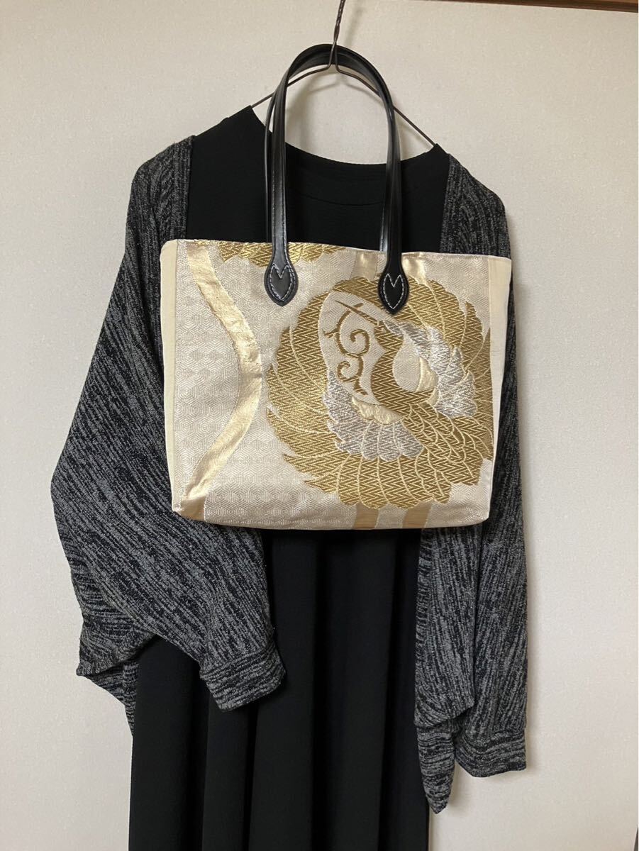 表地 着物の帯リメイク 金 鶴