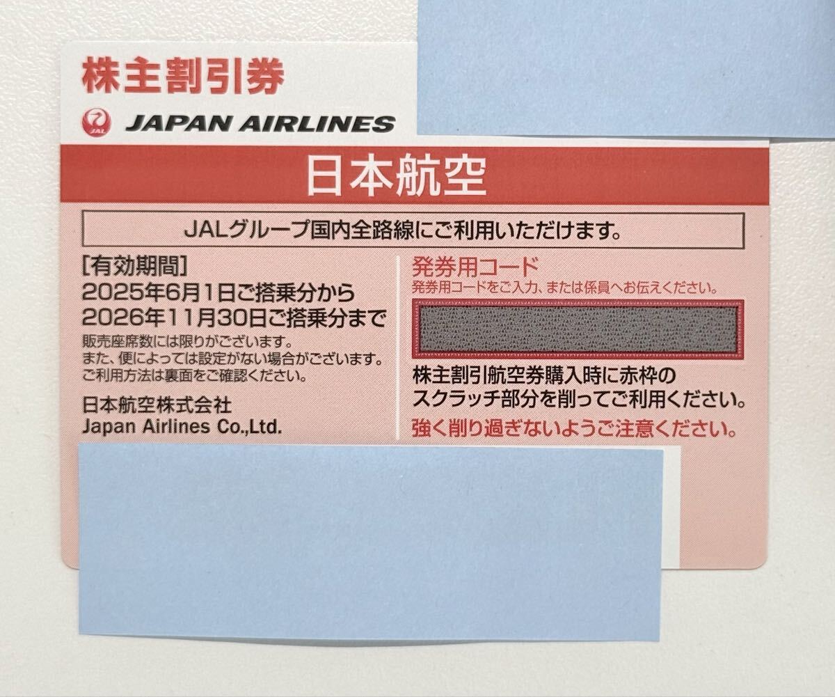 即決! JAL 株主割引券  日本航空株主優待 (コード通知のみ)