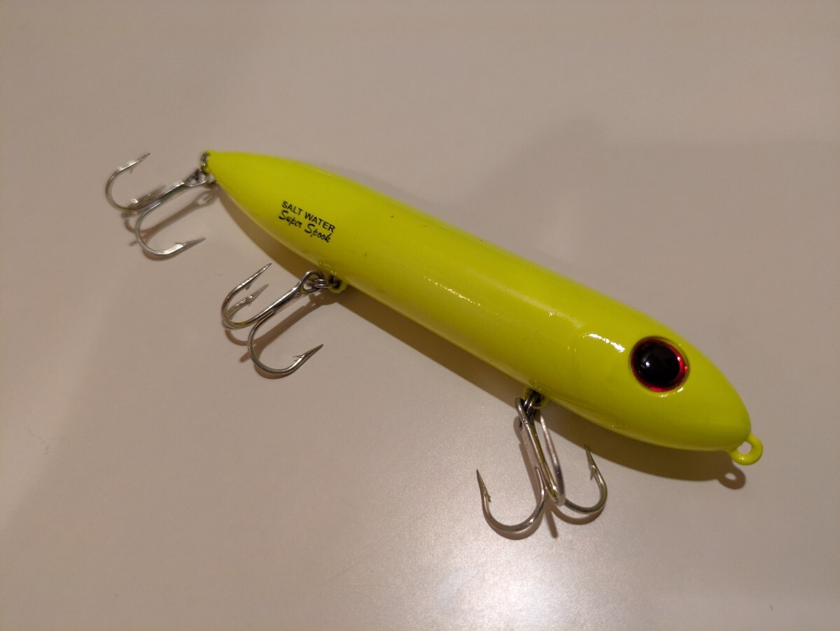 ご覧頂きありがとうございます。ヘドン、スーパースプークソルトの中古となります。新品購入し一度のみの使用となります。状態、カラーは画像からご確認下さい。あくまで中古品になりますので、神経質な方の入札はご遠慮願います。ノークレームノーリターンでお願い致します。支払いはかんたん決済、発送は定形外を予定です。皆様からの入札をお待ちしております。