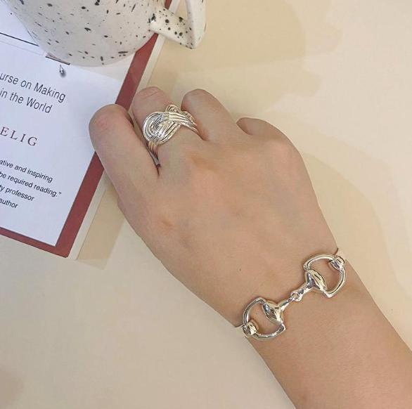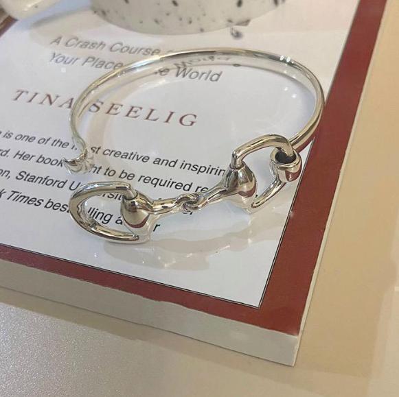 馬具のビット(くつわ)をモチーフにした、クラシカルで気品あふれるデザイン。ベルトのバックルを思わせる立体的なフォルムが、手元に存在感と高級感を演出します。