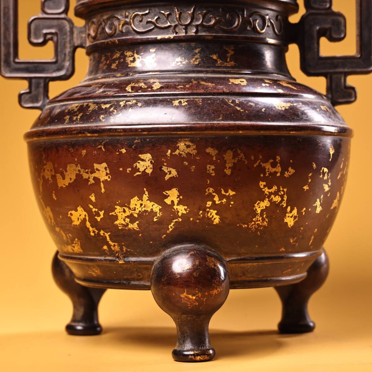 唐物 大明 宣德年工部臣呉邦佐製 純銅 全銅 紫銅 高浮彫點金 灑金工藝 熏香炉 香道具 銅製 銅器 極細工 古美術品 中国古玩 骨董品 D68