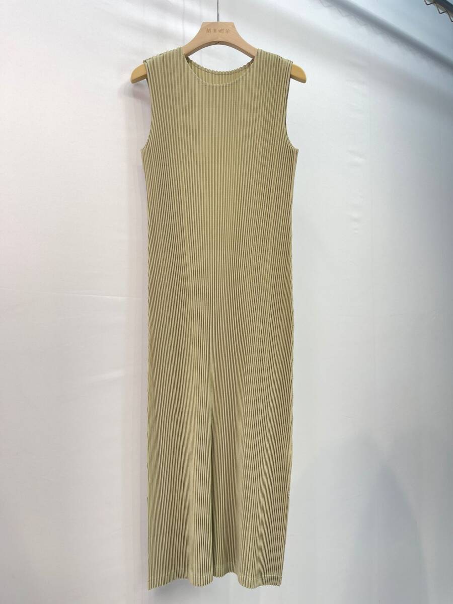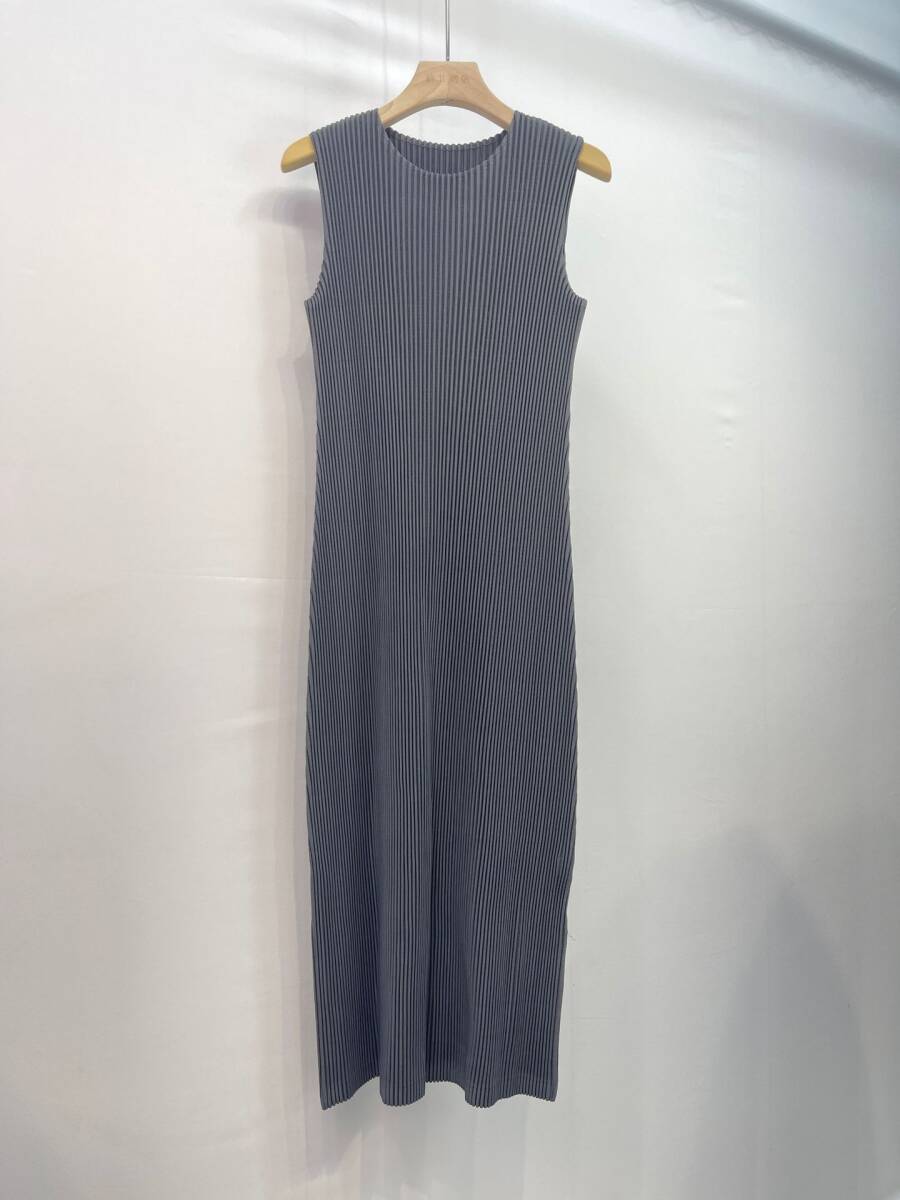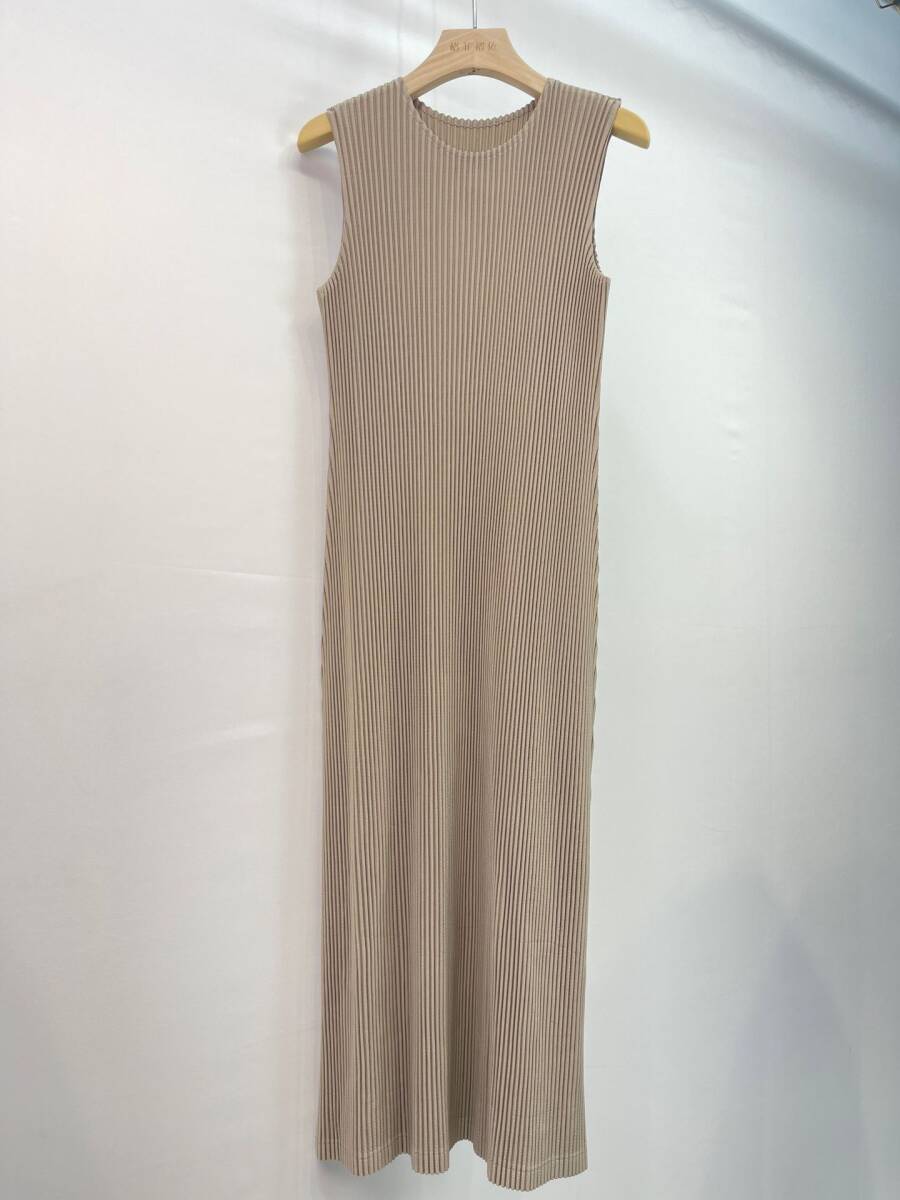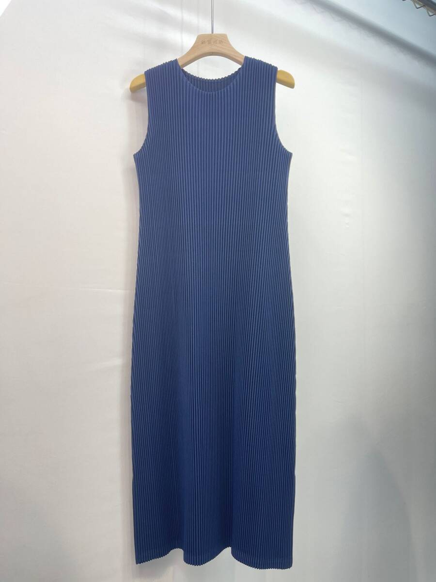 「同梱1万円送料無料」レディーストップスプリーツpleatsノースリーブワンピース弾力が肌触りドレープ性がいい大人可愛い気品紺