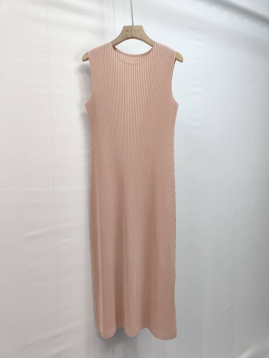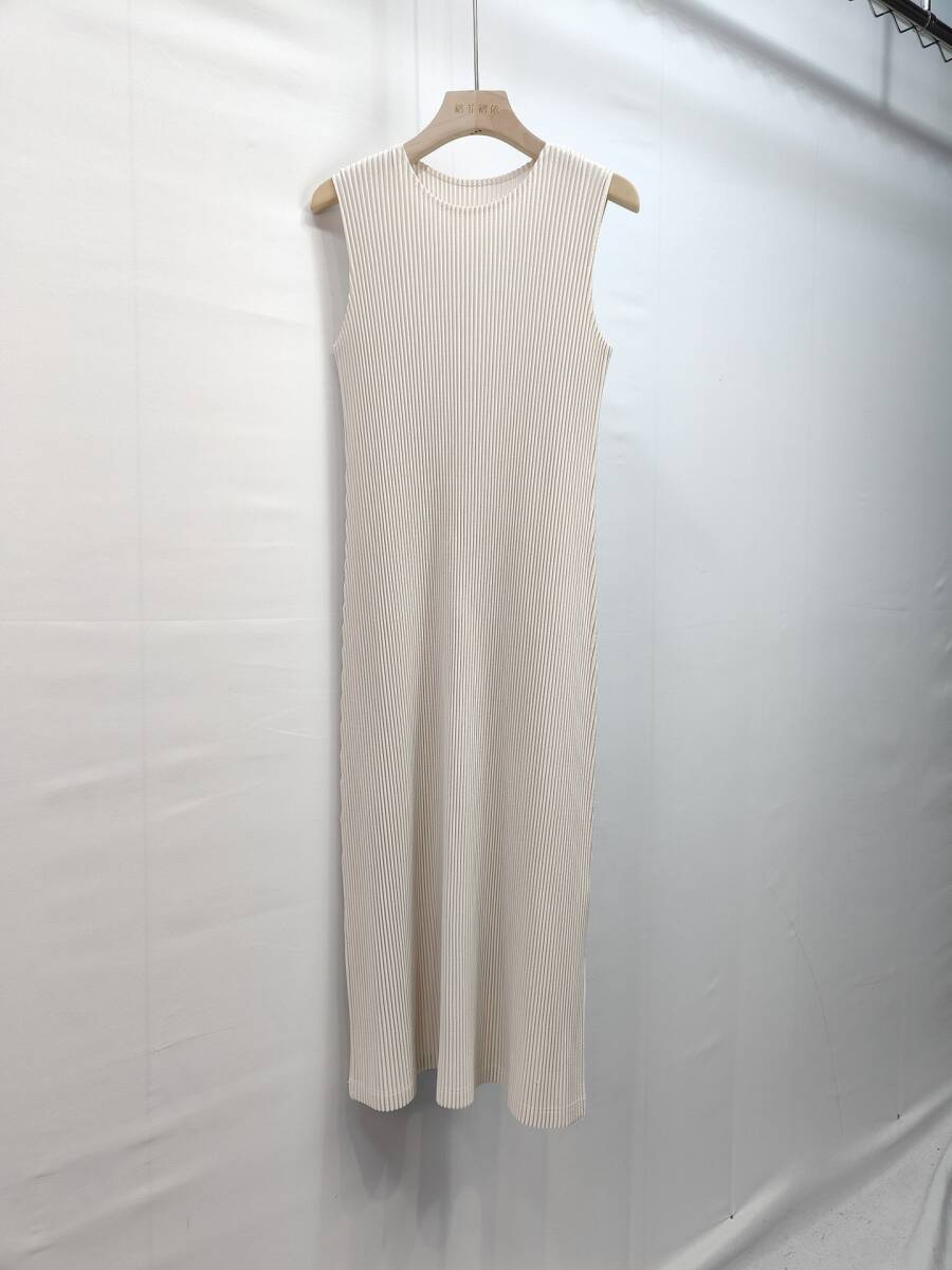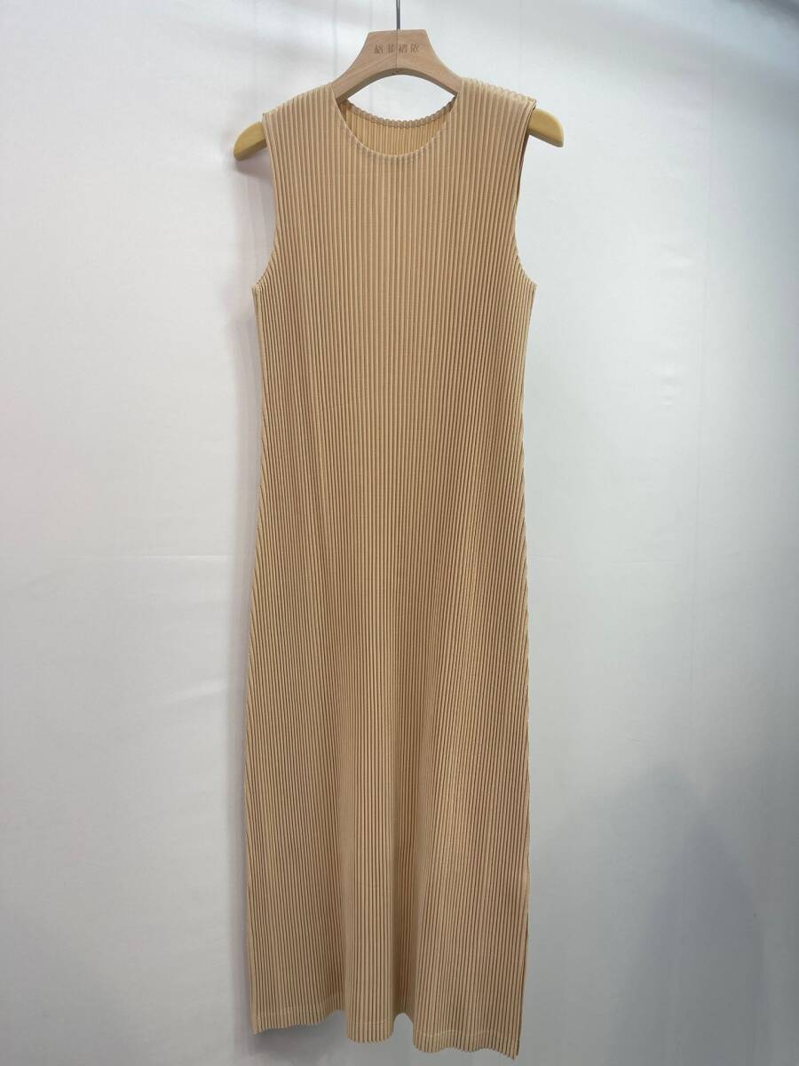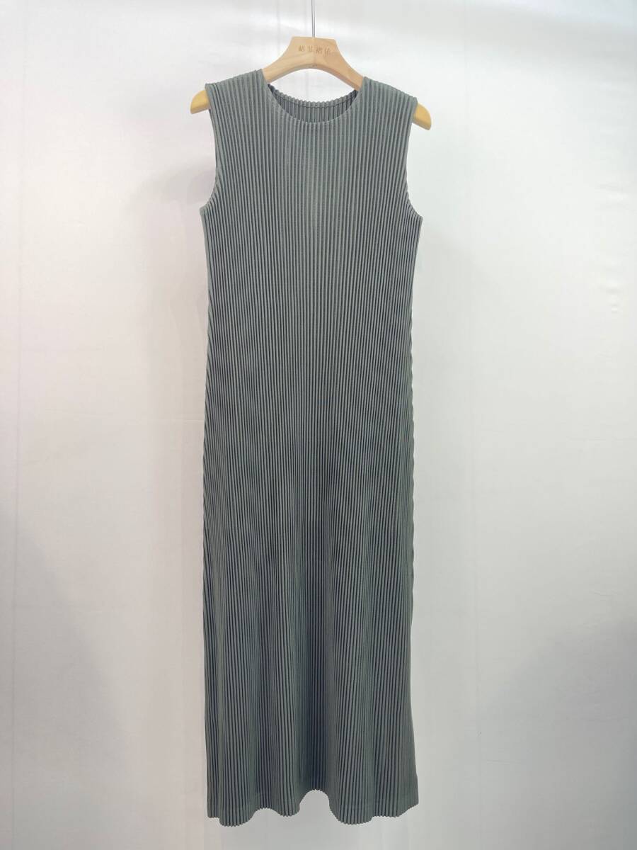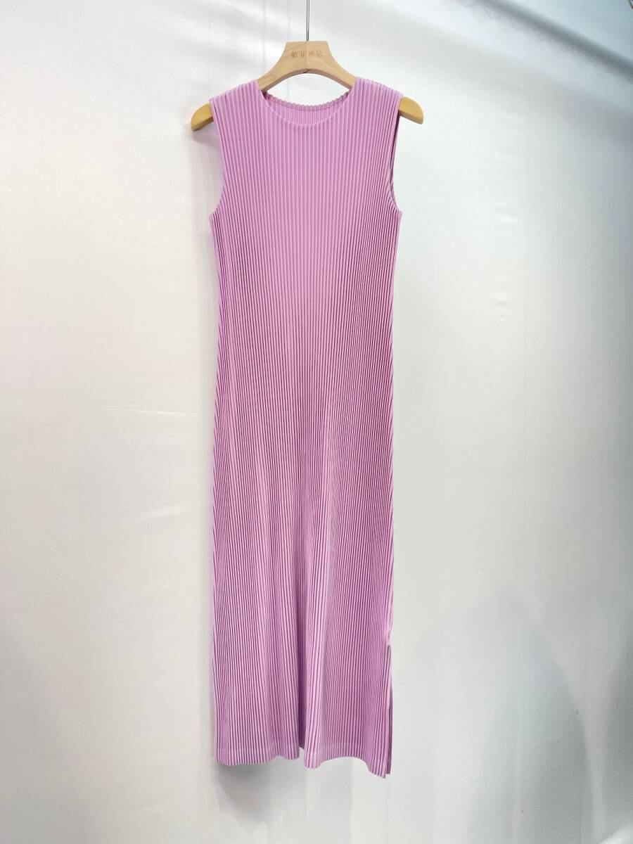 「同梱1万円送料無料」レディーストップスプリーツpleatsノースリーブワンピース弾力が肌触りドレープ性がいい大人可愛い気品紺