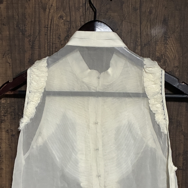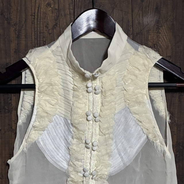 C10◇LE CIEL BLEU | ルシェルブルー シルクノースリーブブラウス ホワイト×アイボリー レディース 38サイズ 中古品