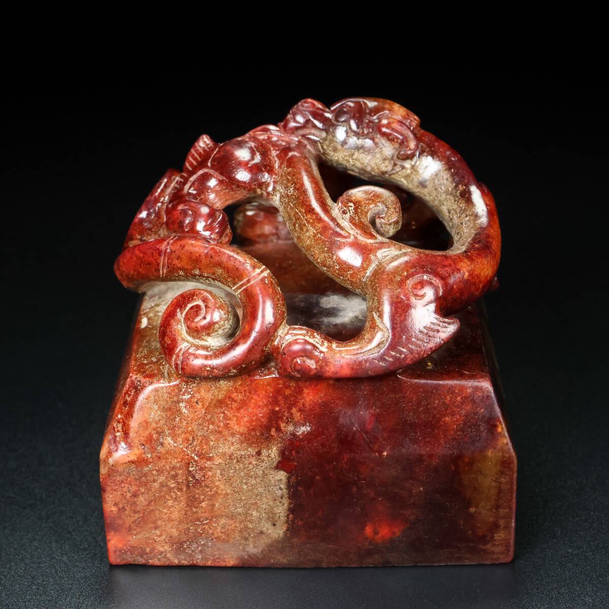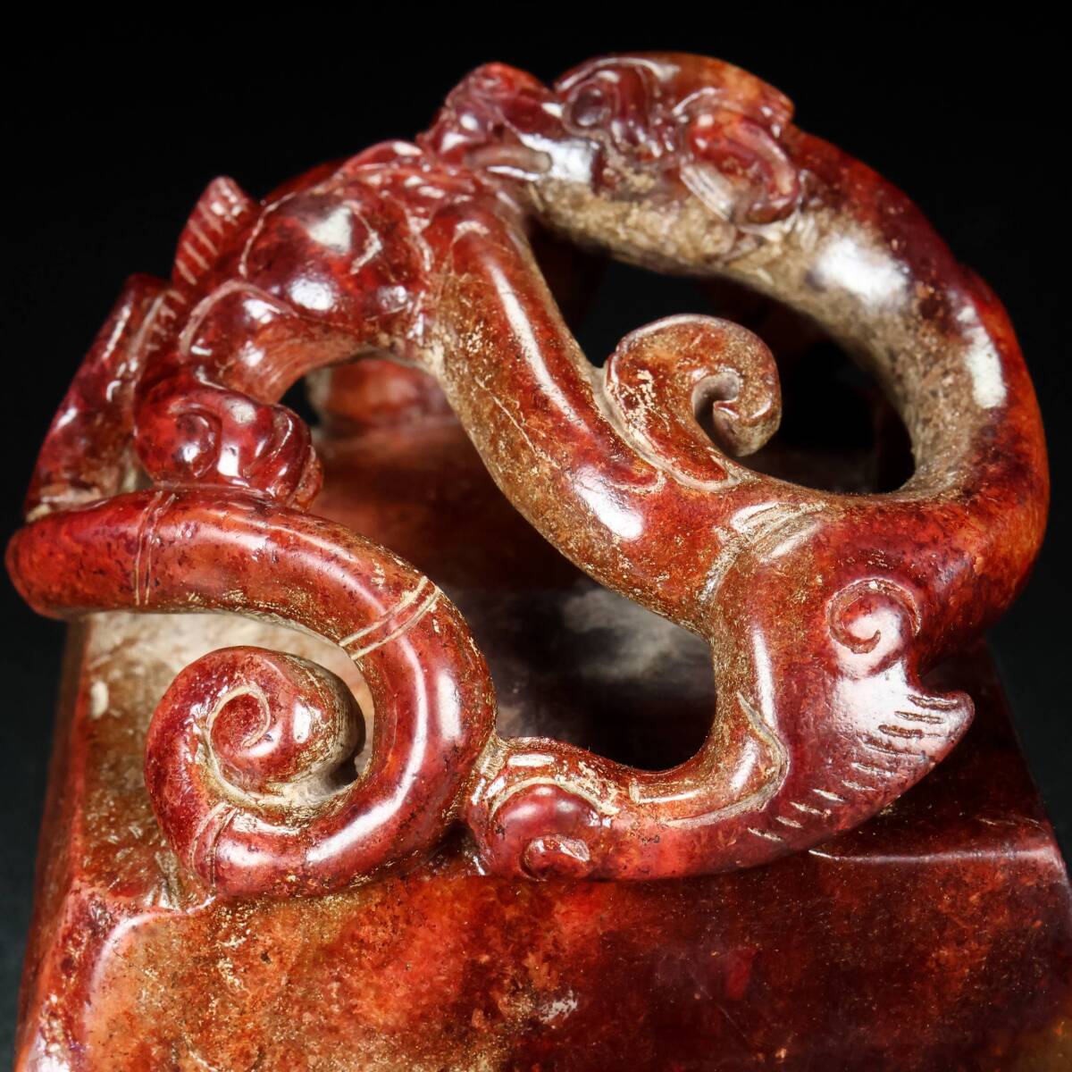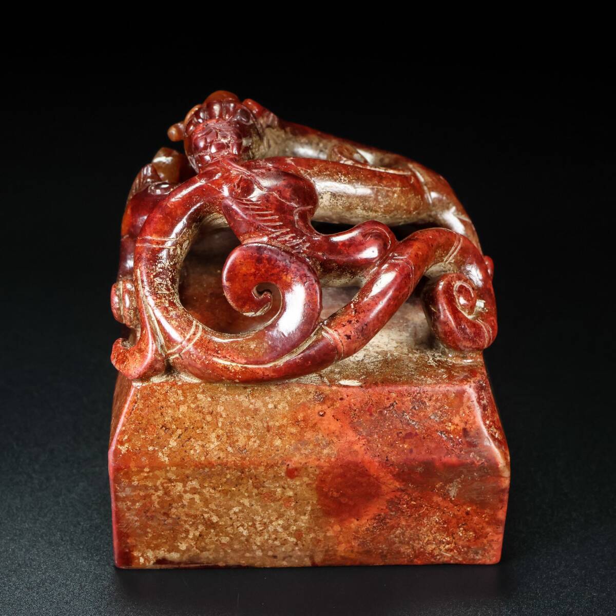 唐物 清 玉彫 和田老玉 龍印章 置物 極細工 中国古玩 骨董品 古美味 D68