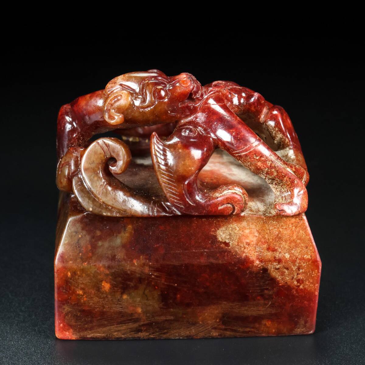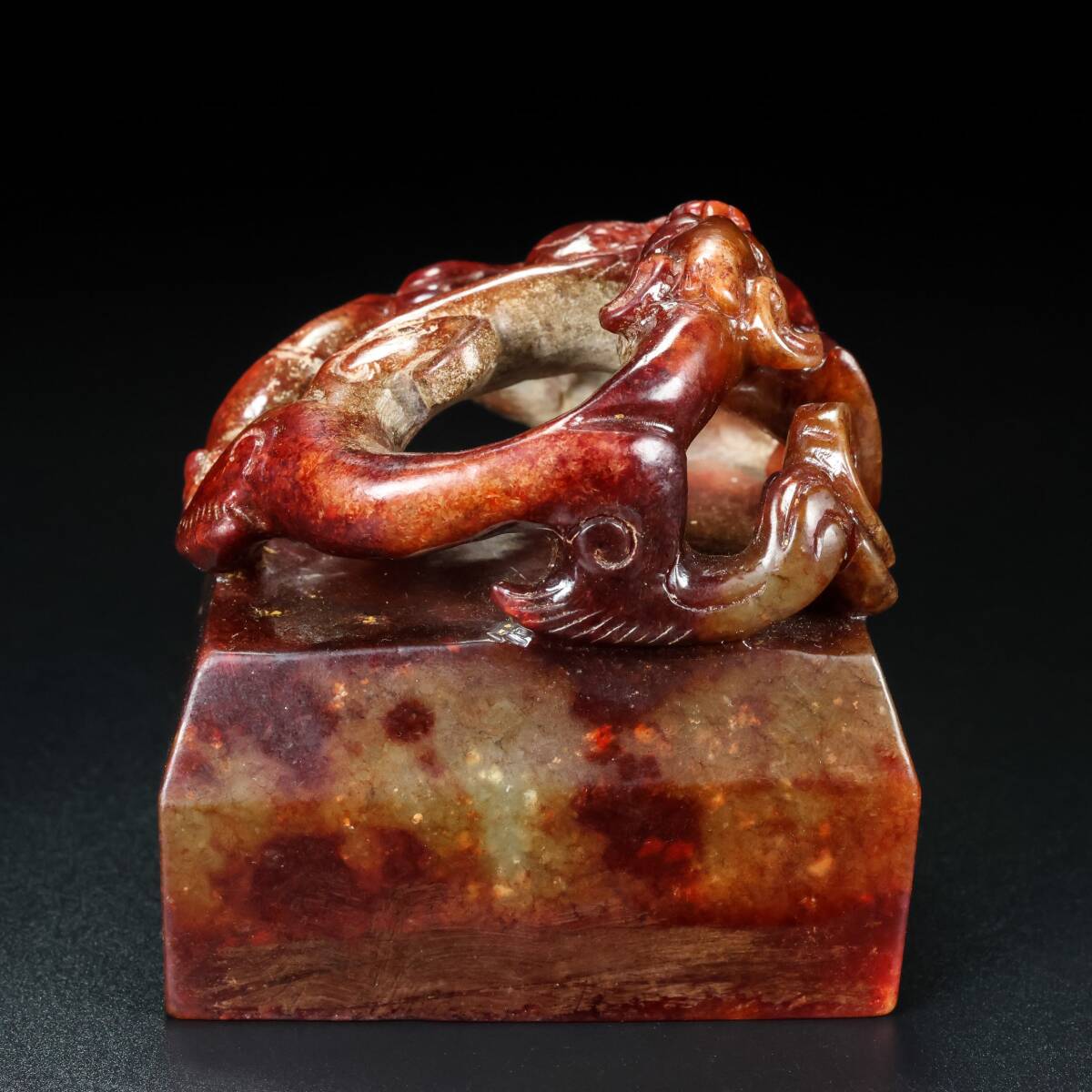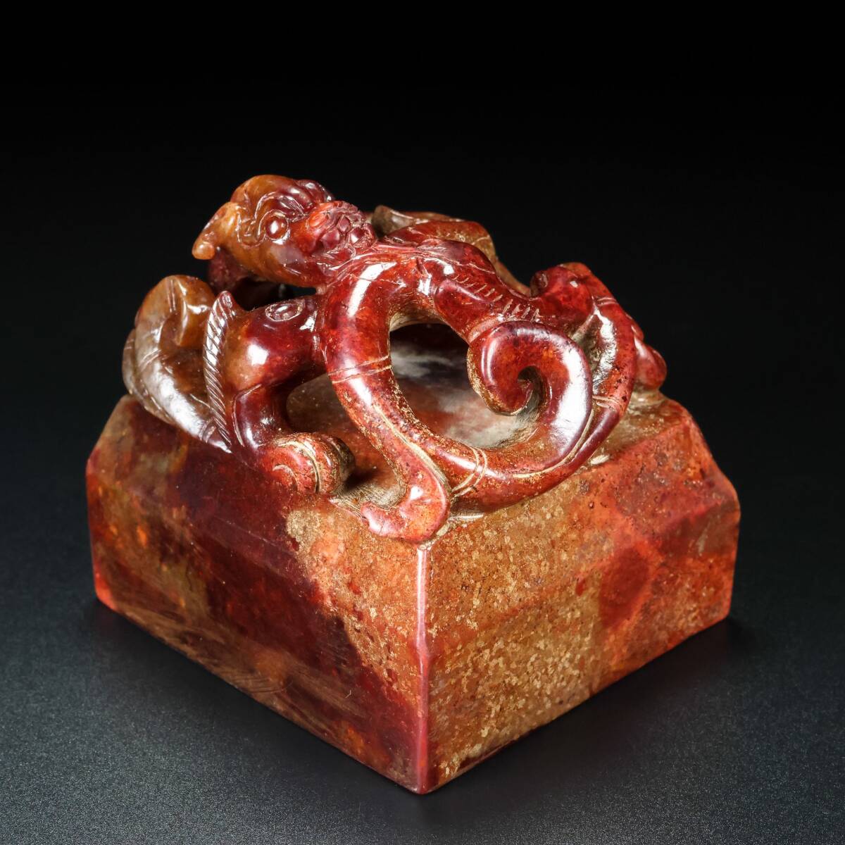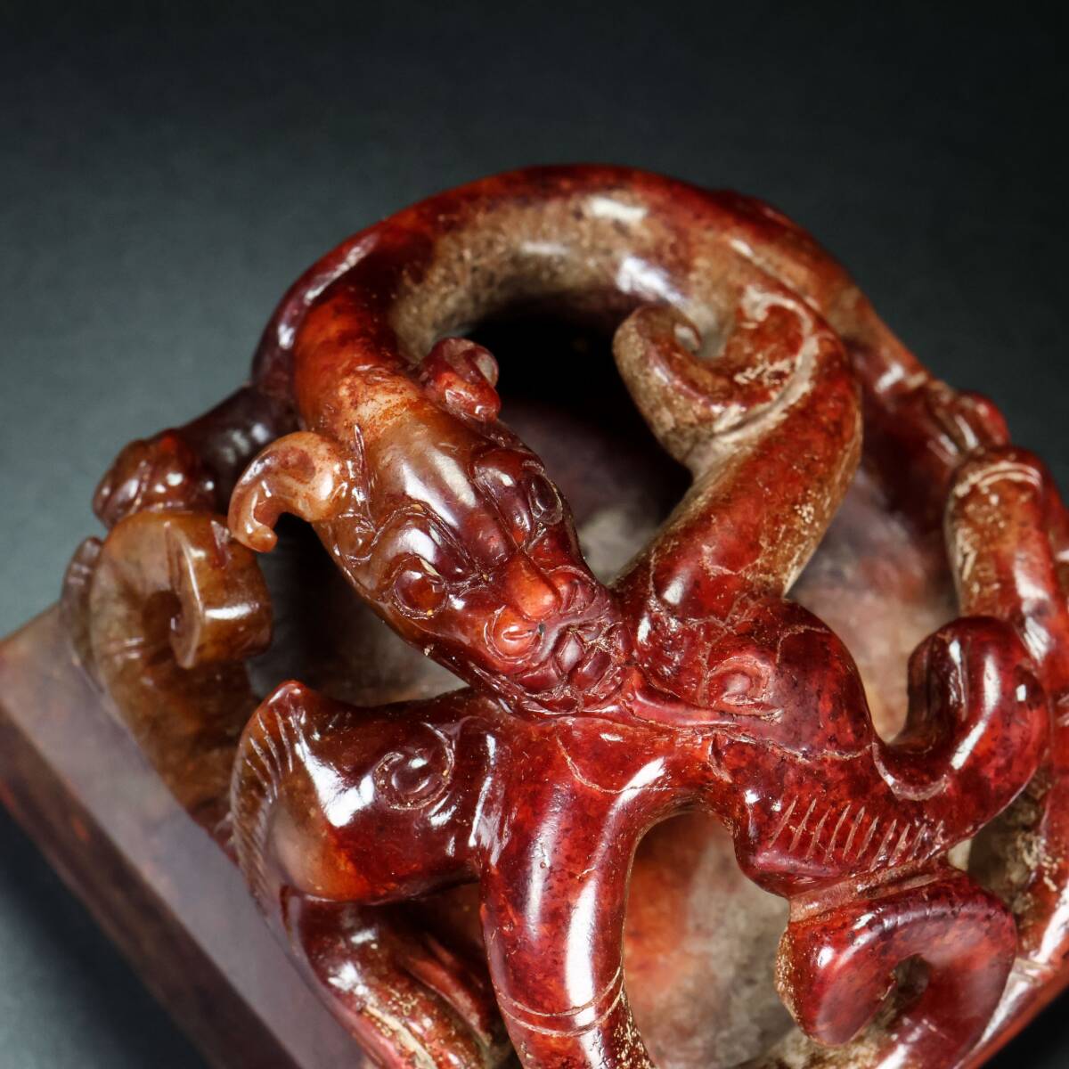 唐物 清 玉彫 和田老玉 龍印章 置物 極細工 中国古玩 骨董品 古美味 D68