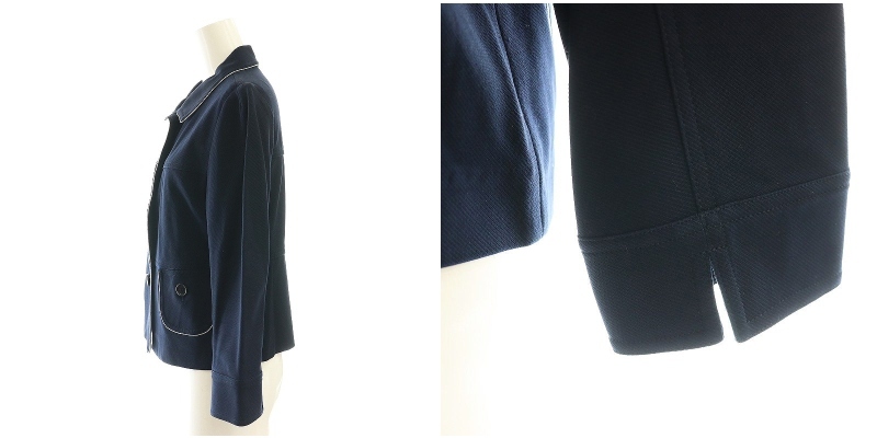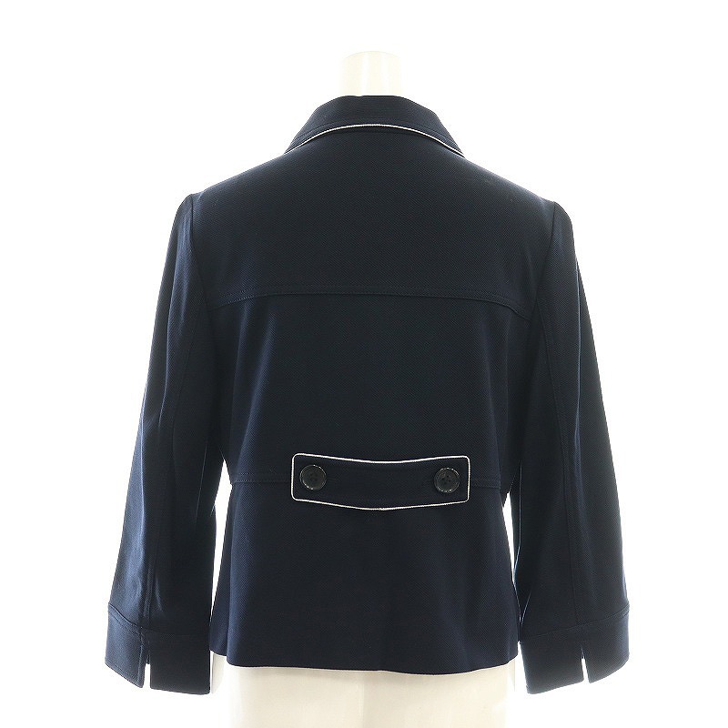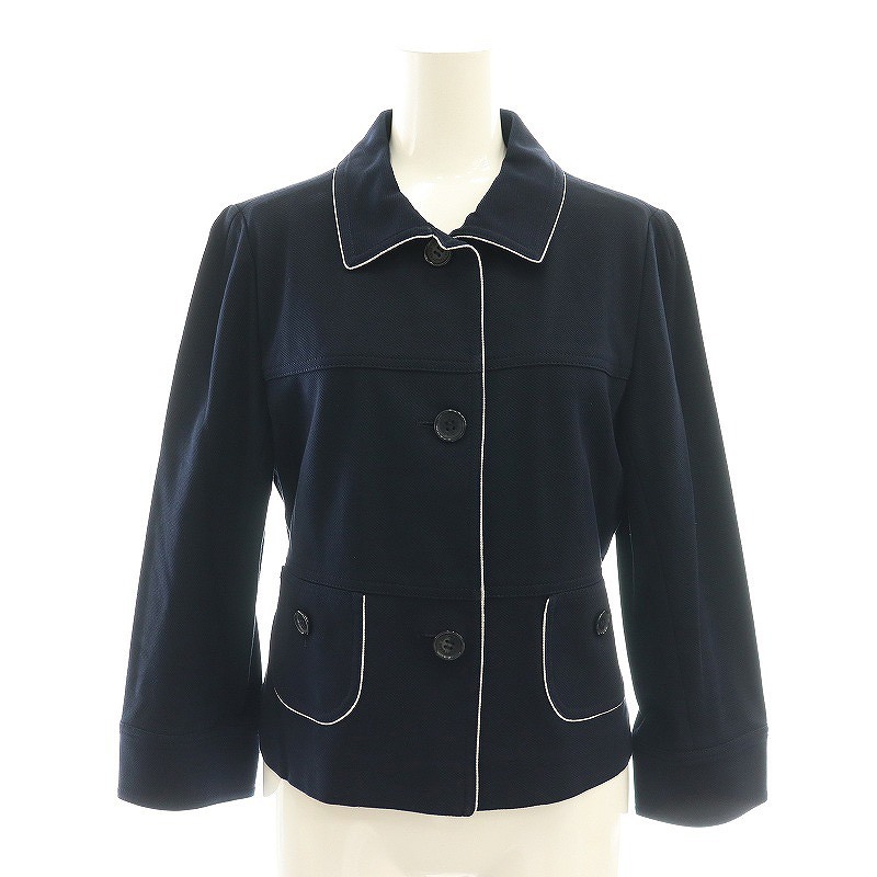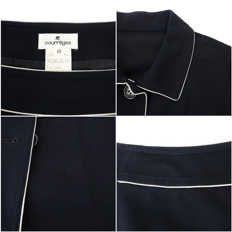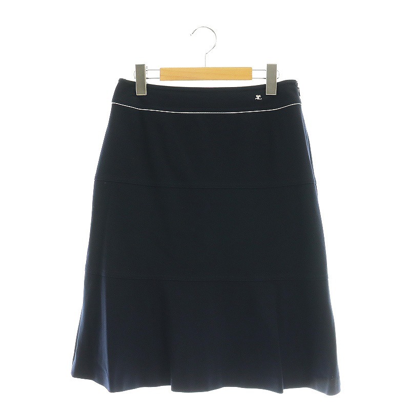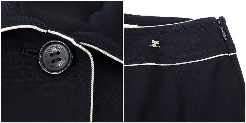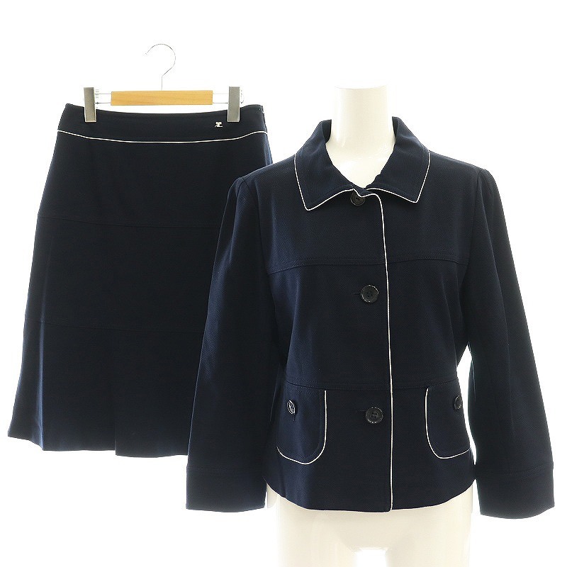 クレージュ courreges ロゴプレート パイピングジャケット×スカート セットアップ ステンカラー フレア 40 紺 白 /CX ■OS レディース