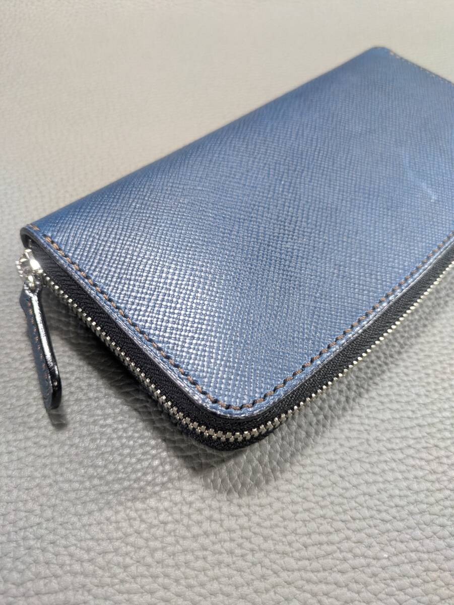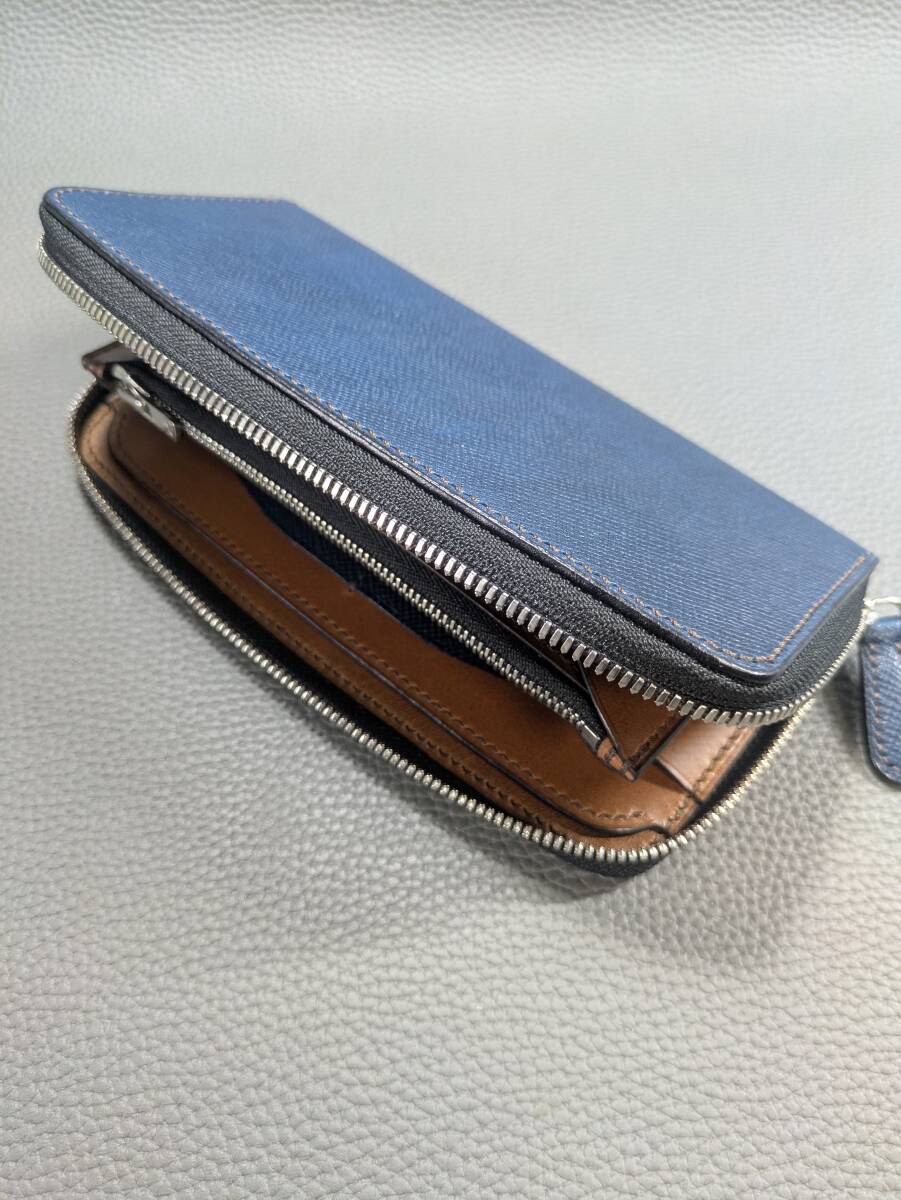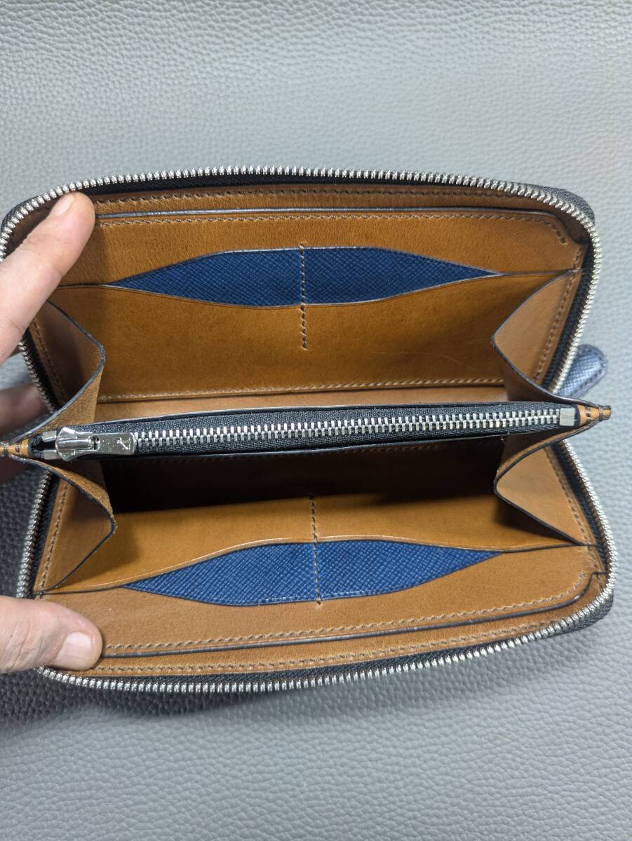 RiDo Leather【ブッテーロハッチ&ブッテーロ】ラウンドファスナーウォレット ロング★ブルー×キャメル 長財布 ハンドメイド |