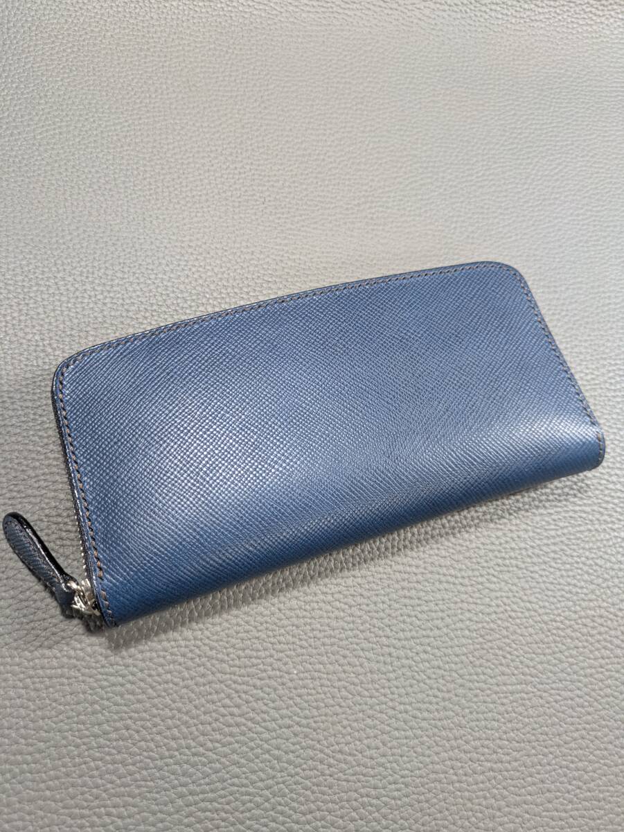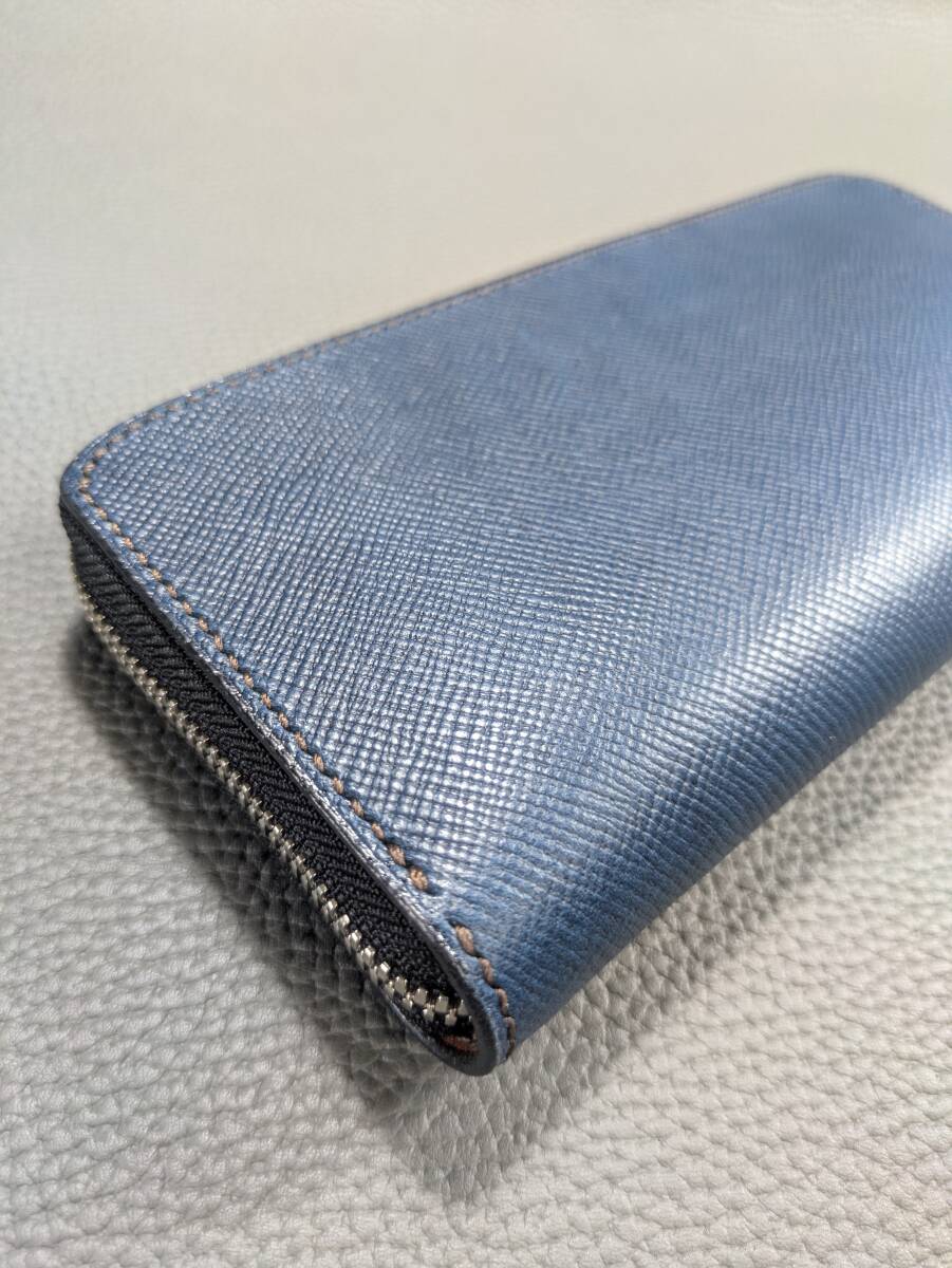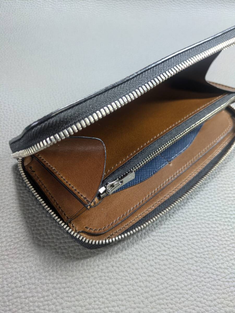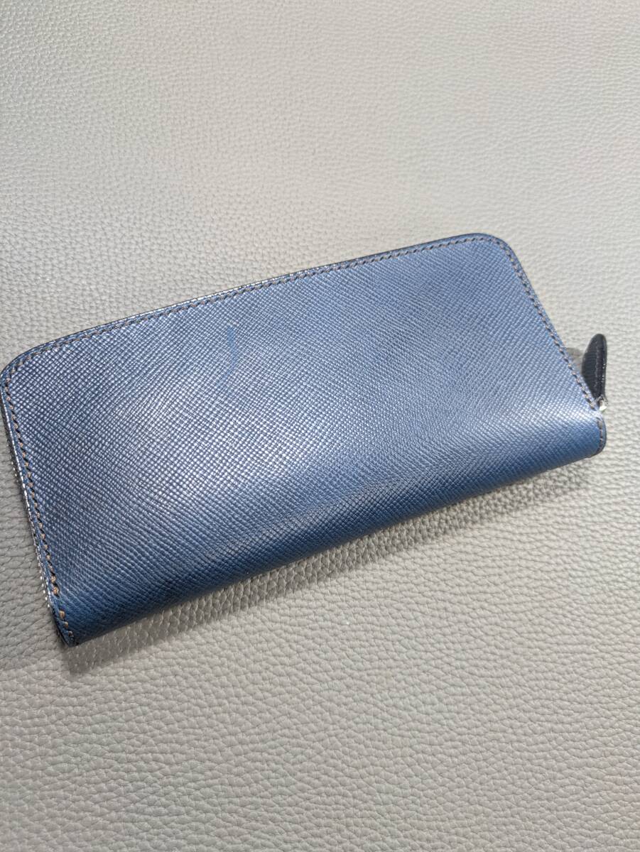 RiDo Leather【ブッテーロハッチ&ブッテーロ】ラウンドファスナーウォレット ロング★ブルー×キャメル 長財布 ハンドメイド |