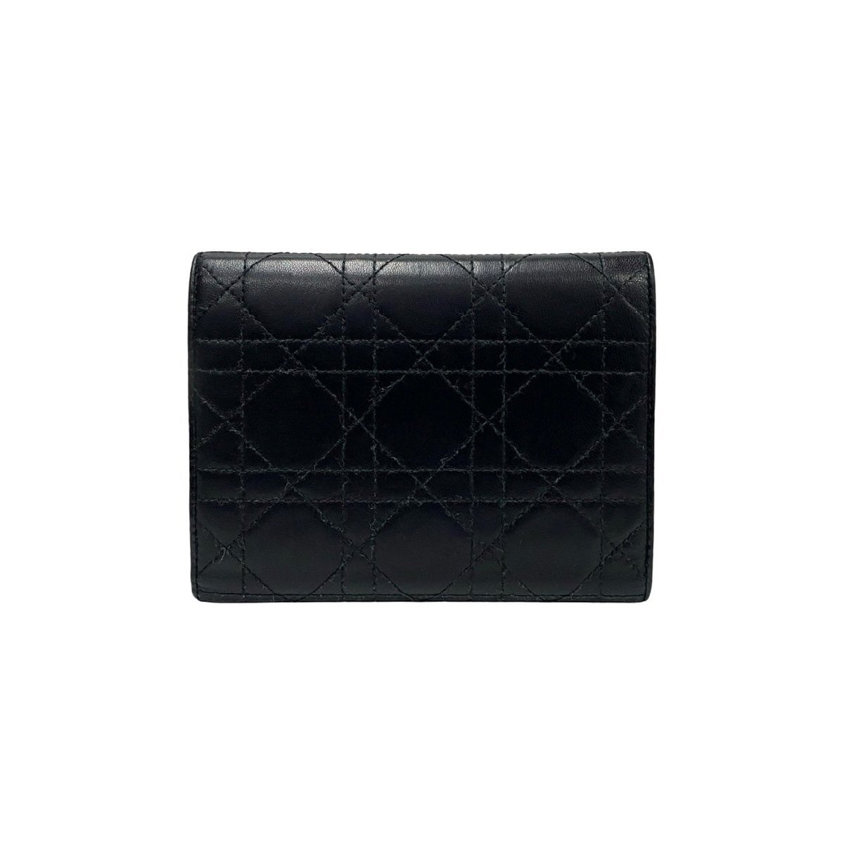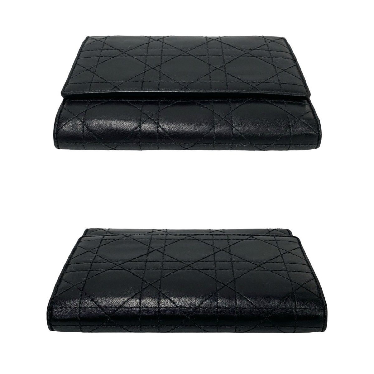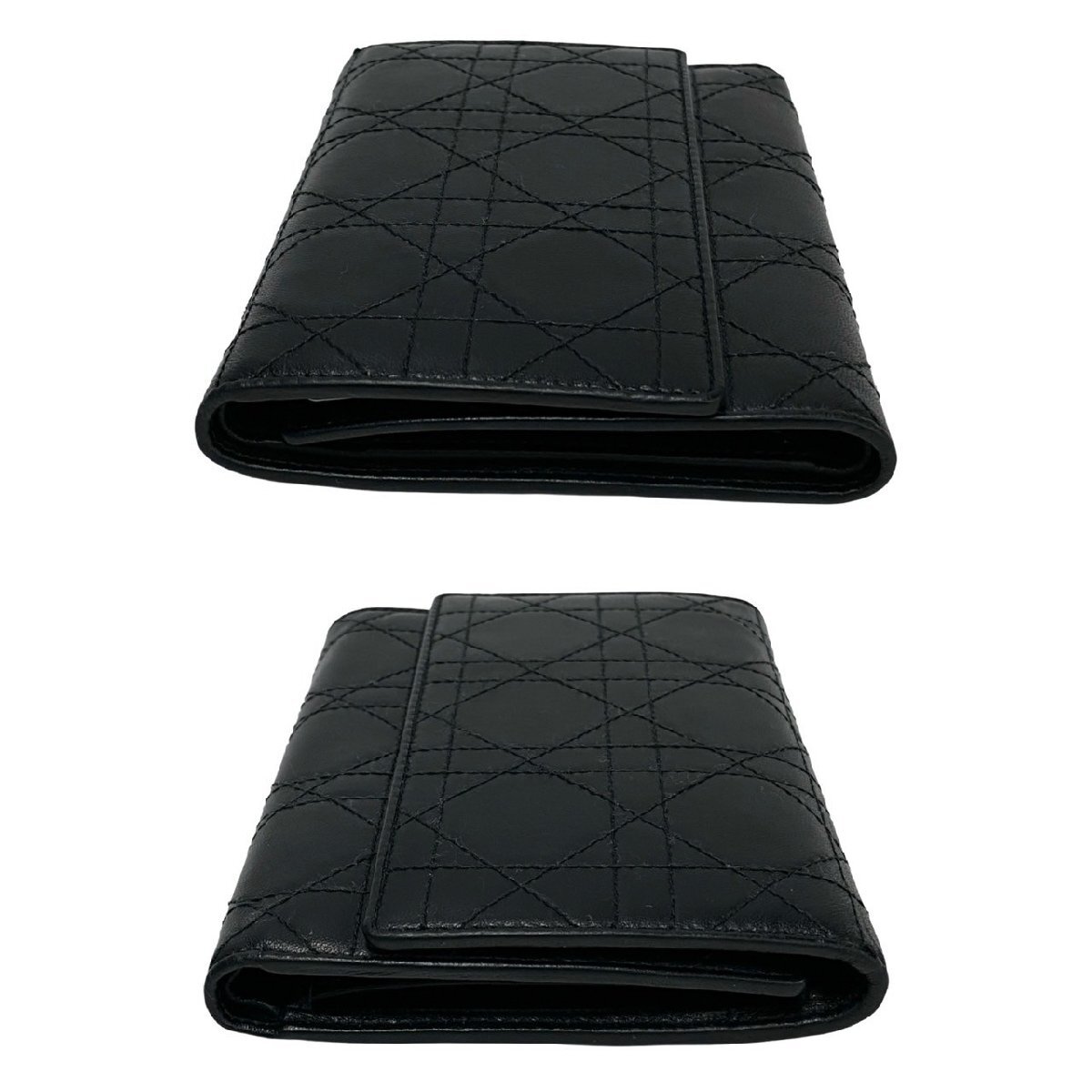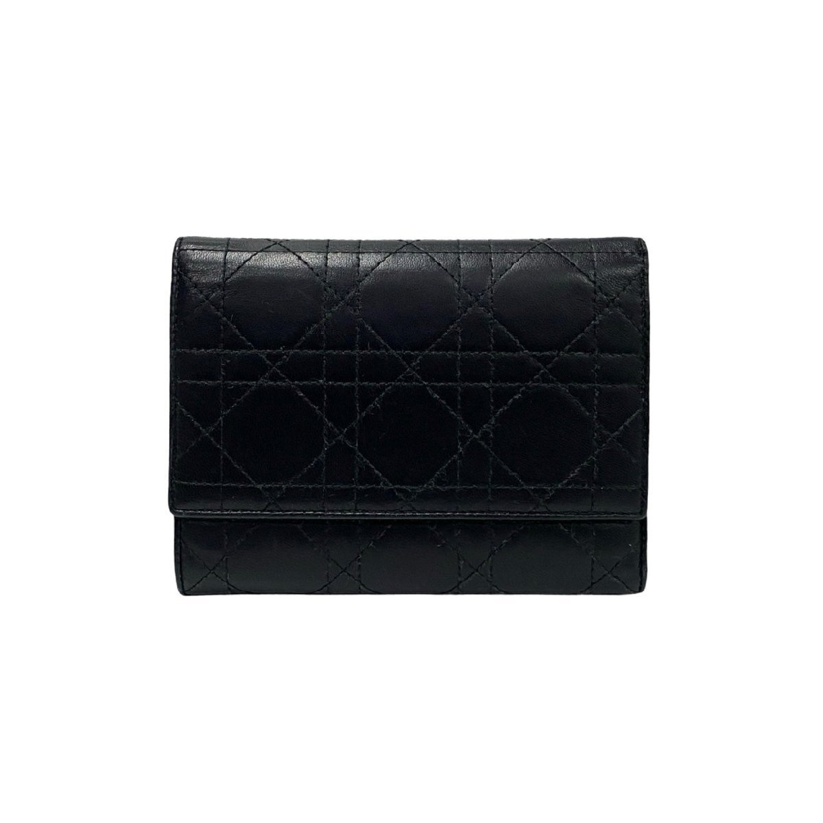 極 美品 箱 袋付 Christian Dior クリスチャンディオール カナージュ レザー 本革 三つ折り 財布 ウォレット 札入れ 小銭入れ 黒 73237