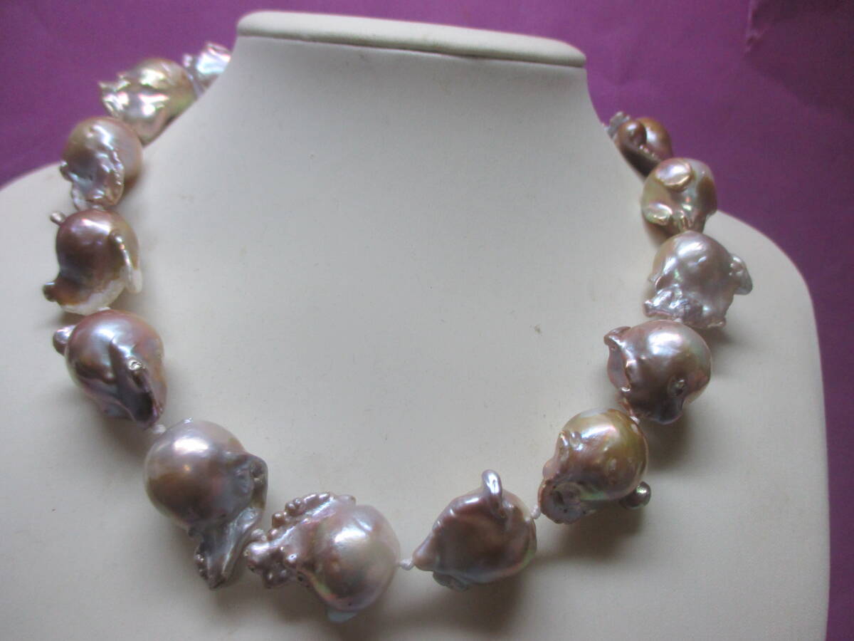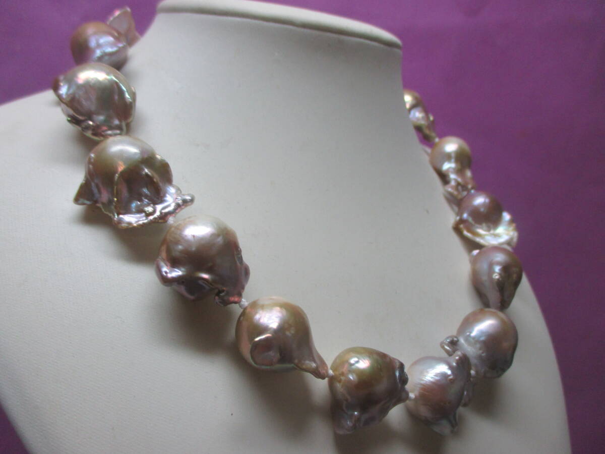 ★★♪新品南洋天然ジャンボゴージャス感バロックパープルベースグロッシーな美しい輝くパールネックレス^^♪