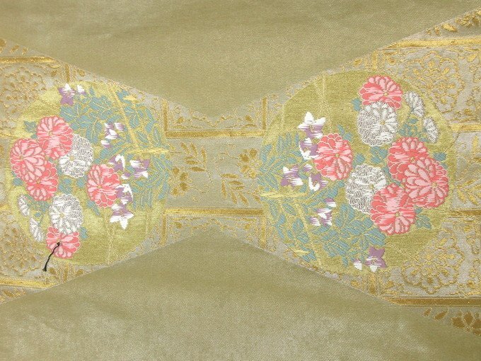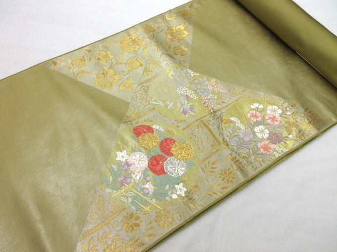緑色系の糸で織りあげた、正絹 九寸 反物 未使用品となります。
