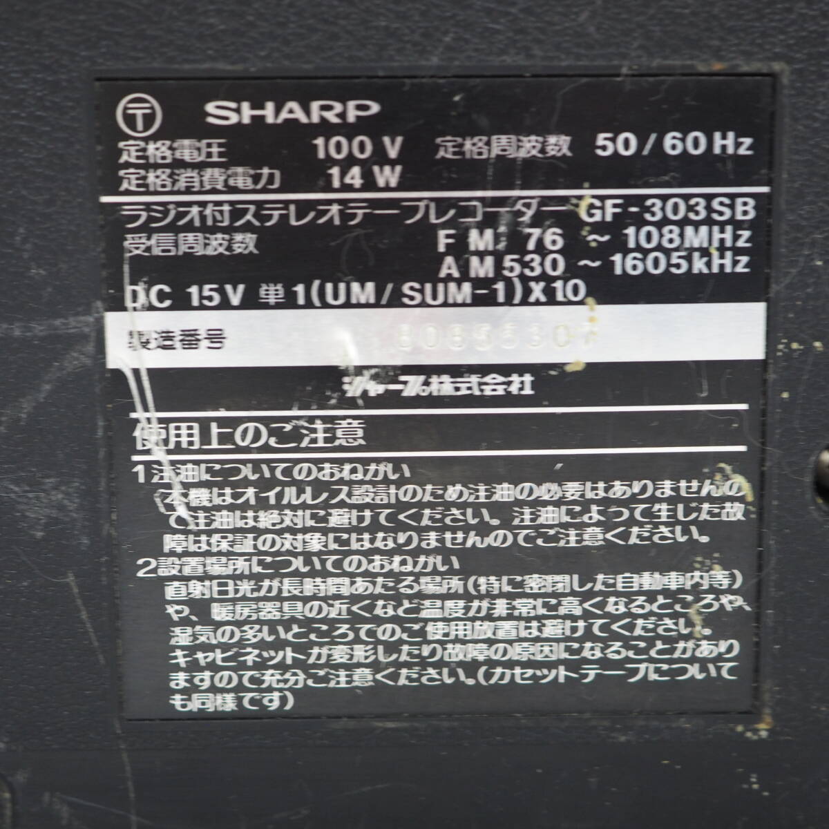 39 ラジカセ SHARPシャープ GF-303SB FM・AMラジオ受信可能 通電確認済 テープ不動 ジャンク品