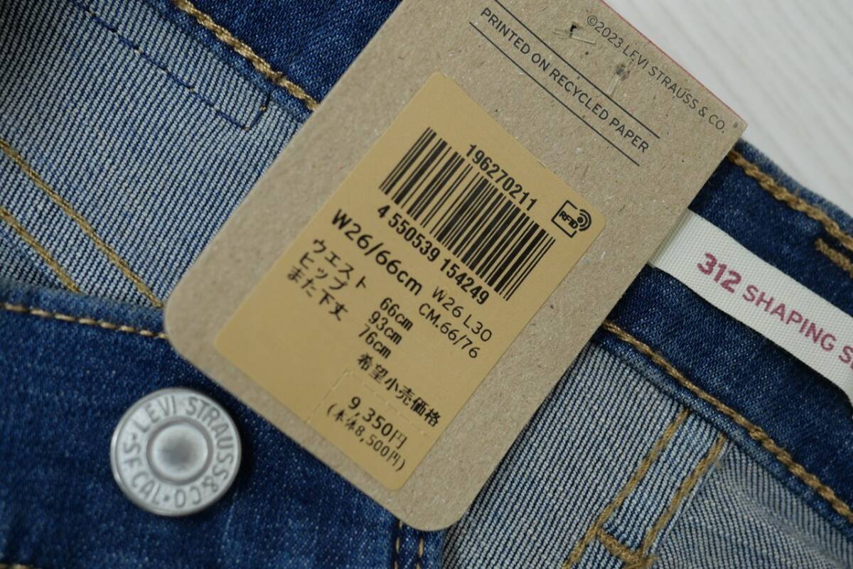 ・新品リーバイス19627-0211 W26/66cm 312 シェイピングスリム インディゴ・ミッドユーズド ストレッチデニム SHAPING SLIM 1着