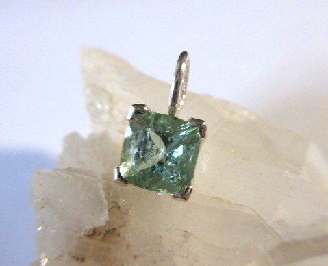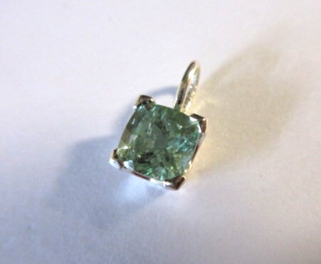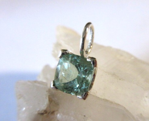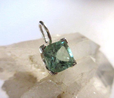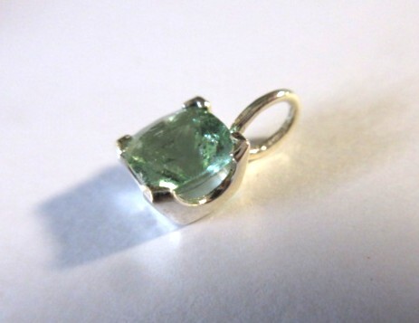 淡い水色グリーンのトルマリンです。インクルージョンがありますが、透明感とテリがあります。チャームとしてもお使いになれます。非加熱。