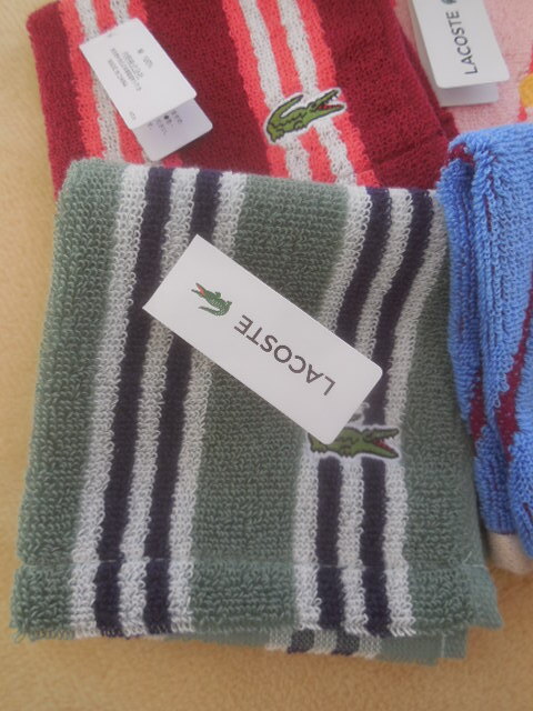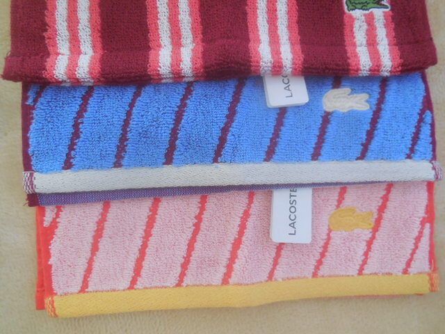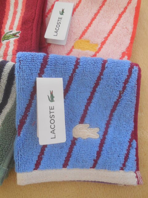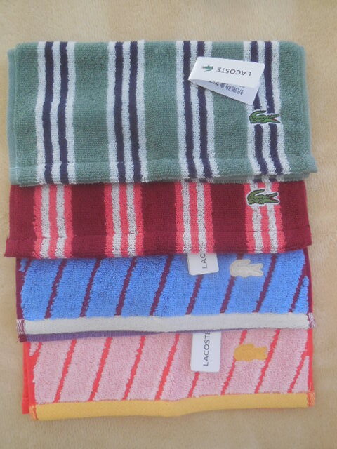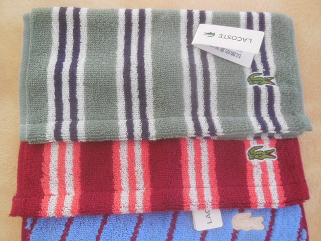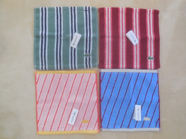 ★新品★ラコステ★タオルハンカチ★LACOSTE★4枚セット★ブルー&ボルドー&グリーン★