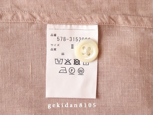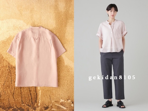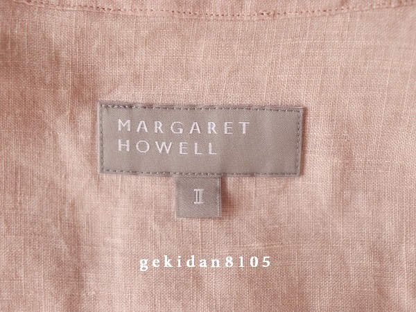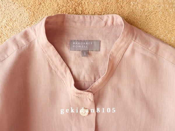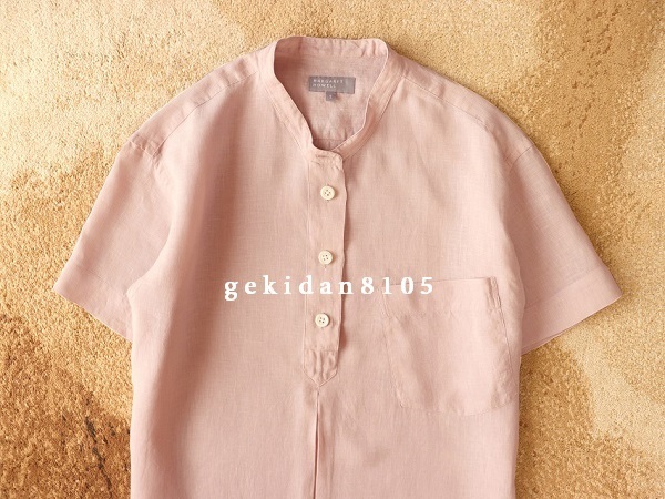 FINE LINEN 2023SSコレクションから マーガレットハウエルでも人気の高い、 シンプルでスタイリッシュなデザインの 新型のスタンドカラーリネンシャツです。 細番手のリネンを高密度に織り上げた、 技術の高い機屋でしか作ることができないという 柔らかく肌触りの優しい上質なリネン素材で、 素材や着心地の良さにもこだわった 他にはないスペシャルな素材となっております。 スタイルは新型で、 ゆったりとしたドロップショルダーのシルエットに、 スラントした胸ポケットがデザインのポイントになった シンプルながらも細かいディティールにこだわりを感じる マーガレットハウエルらしい リラックス感と上品さを兼ね備えた一着に仕上がっています。 タックインしてスタイリッシュでキレイに着るのも素敵ですし、 そのままリラックスした着こなしでも様になります。 モデルさんのスタイリングのように 袖をロールアップしてもこなれ感が出て、 ほどよいラフさと軽快なアクセントをプラスしてくれます。 上品で柔らかなペールピンクの色合いが可愛らしく、 コーディネートの差し色としても映える 大人のコーディネートにも取り入れやすい、 ワンランク上のブリティッシュモダンなオシャレを演出してくれます。 タイムレスにご着用いただけるデザイン・カラーで、 スカートやトラウザーにもマルチに合わせられ、 気分に合わせてボトムスを変えることで、 マニッシュにも、フェミニンにも、幅広くコーディネートを楽しめます。 定価も高く、全国完売となっている商品ですので、 買い逃してしまった方、お探しだった方はぜひ。 コンディション:1~2回着用(未使用に近い) ※目立った汚れやダメージなし カラー:Pale Pink サイズ:2(こちらの商品はサイズ1・2のみの展開です。) 着丈:約62cm 肩幅:約49cm 身幅:約56.5cm 袖丈:約19.5cm 素材:リネン100% 定価:30,800円 | ||