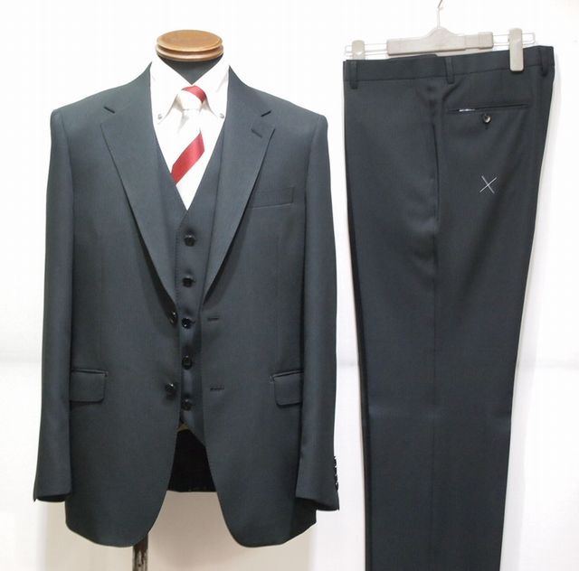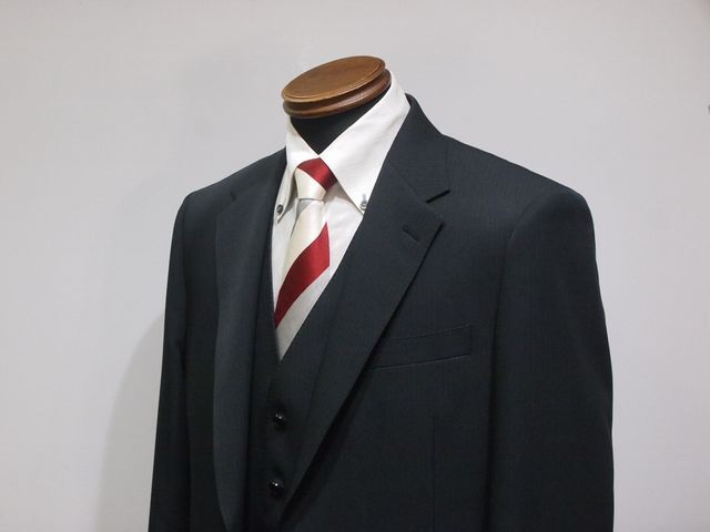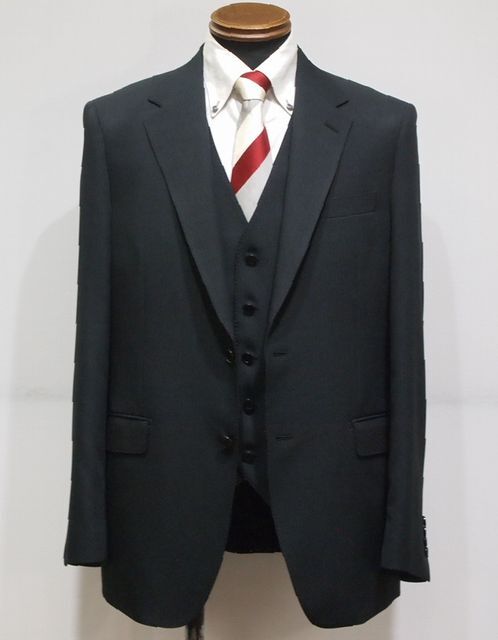 新入荷■5631■背抜き スタイリッシ ノータック2っ釦スリーピース■AB6■ブラック/ストライプ■