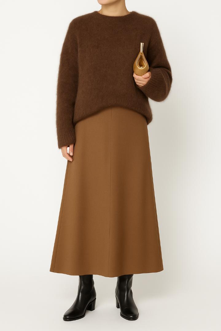 美品ミューズ ドゥーズィエムクラス DAGGY WOOL フレアスカート ロング ウール 36 茶 MUSE de Deuxieme Classe 22AW DAGGY WOOL フレアスカート ロング ウール 36 茶