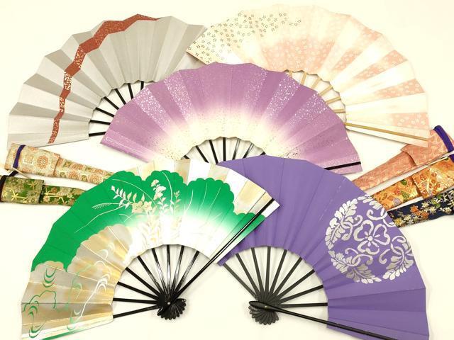 平和屋着物▼和装小物 扇子 まとめて5点 舞扇 箔散らし 扇子袋付き 逸品 AAAY6026ay