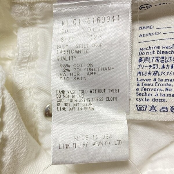 セオリー theory ジーンズ/デニムパンツ サイズ026 S - 白 レディース フルレングス ボトムス