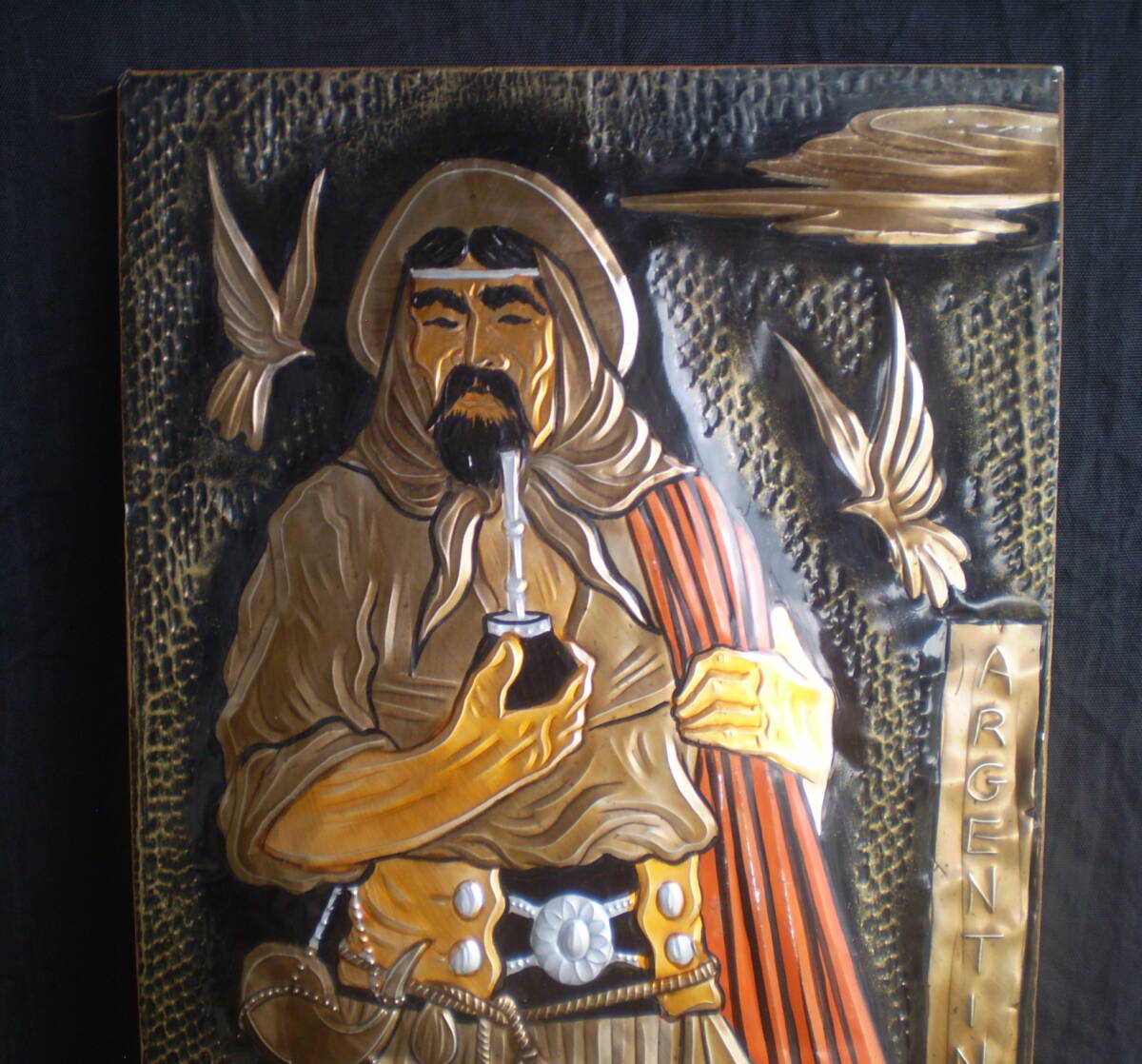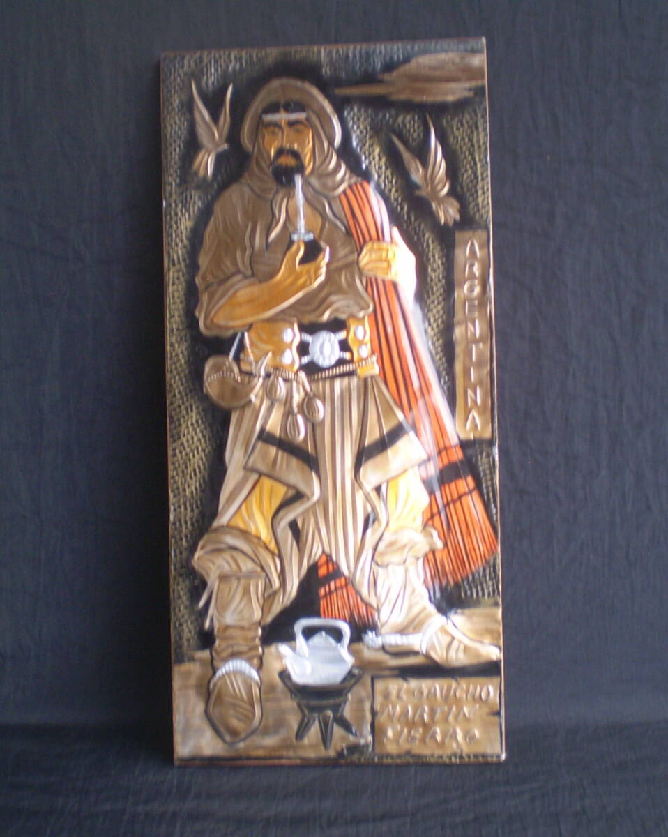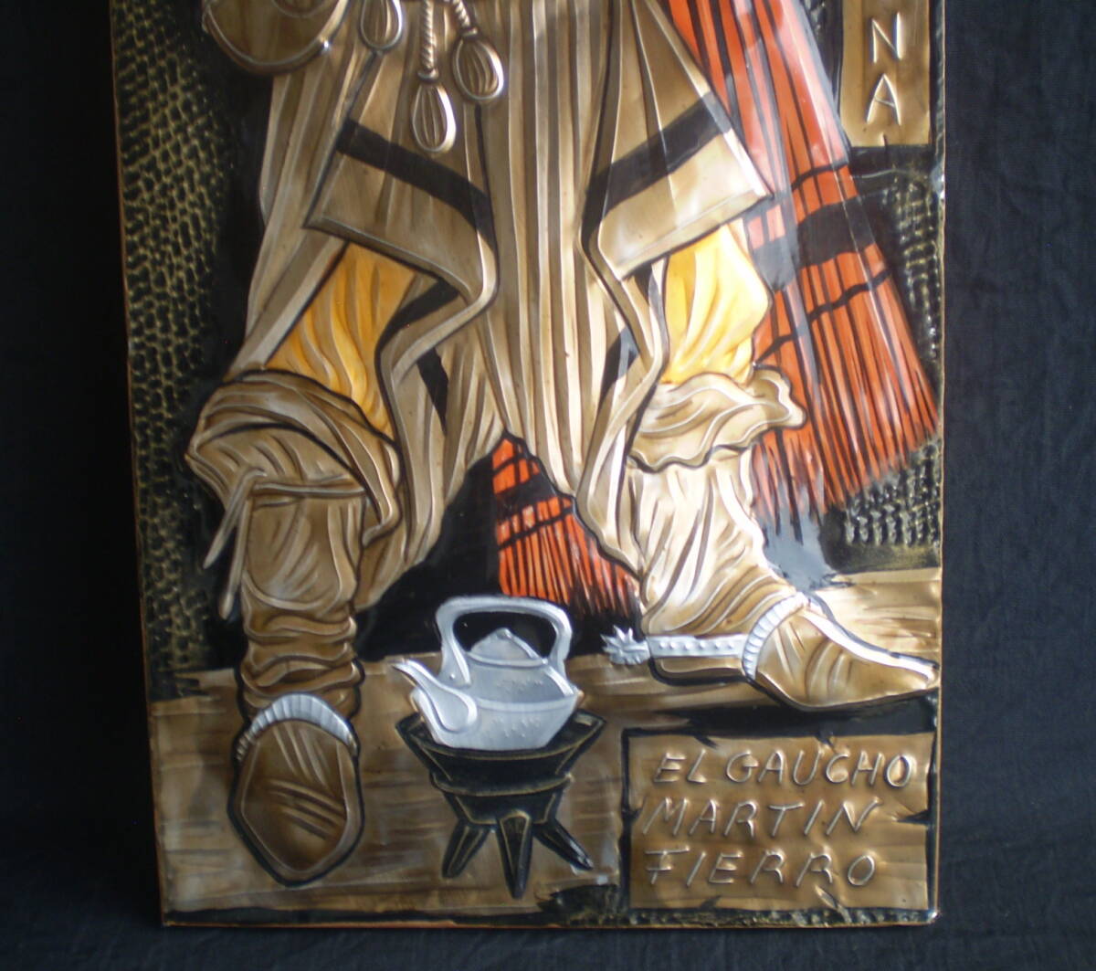 アルゼンチン ELGAUCHO MARTIN FIERRO 民芸品 銅板画 壁掛け パネル 約46×21cm