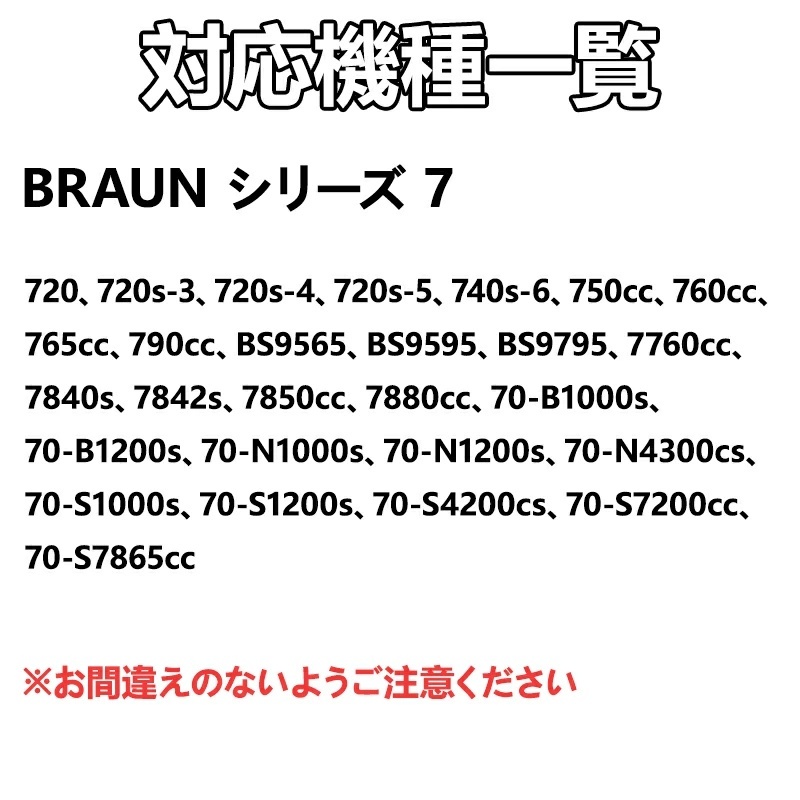 商品番号: YY938 【ご注意ください】 本製品は互換品となります。 ブラウン社の純正品・正規品ではございませんので、あらかじめご了承ください。 【動作確認済み】 ブラウン製シェーバーの対応機種にて、装着・動作確認を行っております。 【対応機種について】 ブラックとシルバーの違いは、持ち手のカラーのみです。 対応機種や性能に違いはありませんので、お好みに合わせてお選びください。 ・ブラック 720s-7 740s-7 790cc-4LDE、790cc-5LDE、790cc-7LDE、790cc BOSS ・シルバー 720、720s-3、720s-4、720s-5、720s-6、740s-6 750cc、750cc-3、750cc-4、750cc-5、750cc-6、750cc-7 760cc、760cc-3、760cc-4、760cc-5、760cc-6、760cc-7 765cc、765cc-3、765cc-4、765cc-5、765cc-6、765cc-7 790cc、790cc-3、790cc-4、790cc-5、790cc-6、790cc-7 BS9565、BS9566、BS9581、BS9585、BS9591、BS9595 BS9781、BS9782、BS9785、BS9791、BS9795 7720s、7720s-P、7760cc 7840s、7840s-P、7840s-SP、7842s、7842s-P 7850cc、7850cc-SP、7850cc-SP1、7855s、7855s-P 7865cc、7867cc、7880cc、7893s、7893s-SP、7893s-SP1 7897cc、7898cc、7898cc-P、7899cc、7899cc-P その他、以下ブラウン社の替刃に対応するすべてのシェーバーでご利用できます。 ・F/C70B-3 ・F/C70S-3Z、F/C70S-3、F/C70S