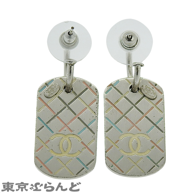 001013987 シャネル CHANEL ココマーク マトラッセ タグ 05P シルバー メタル ピアス レディース
