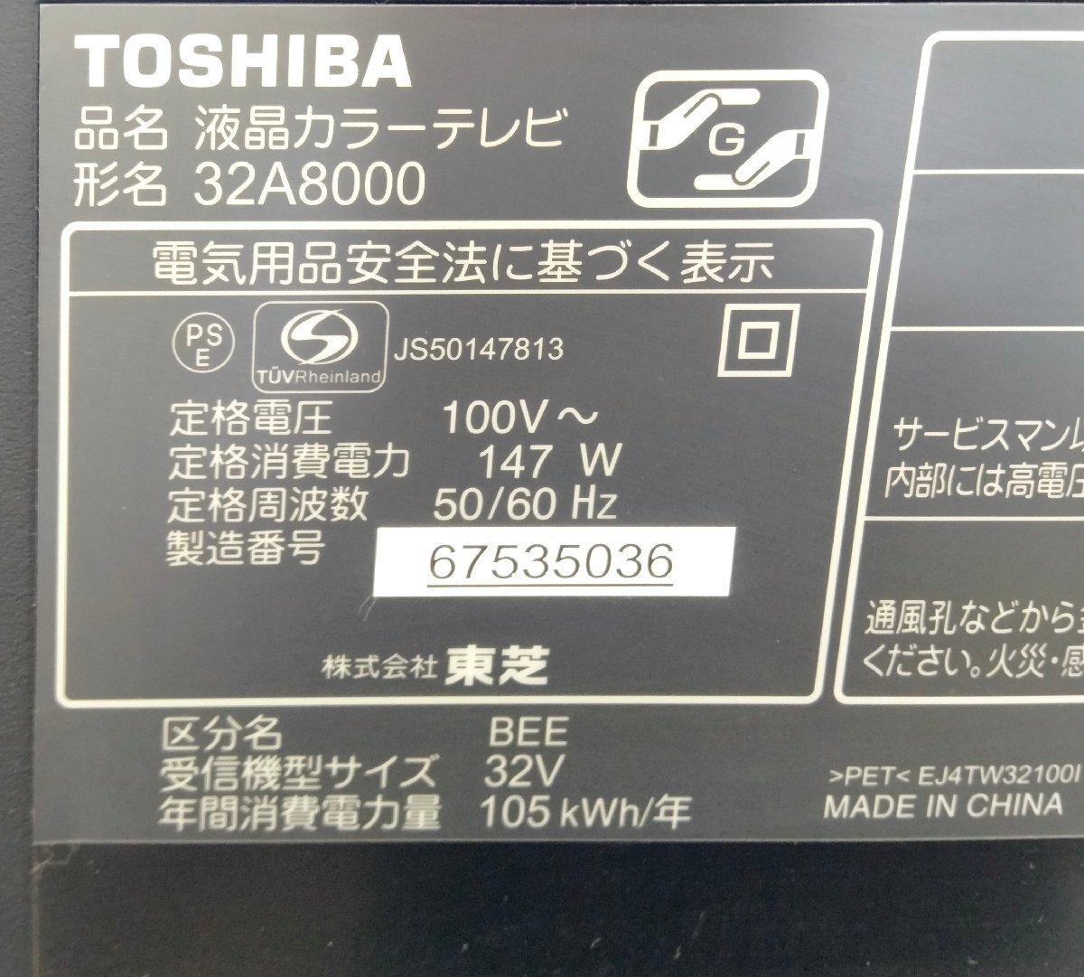 【状態】中古。通電起動視聴チャンネル設定まで確認済。表面に、細かいキズ、薄い汚れあり。