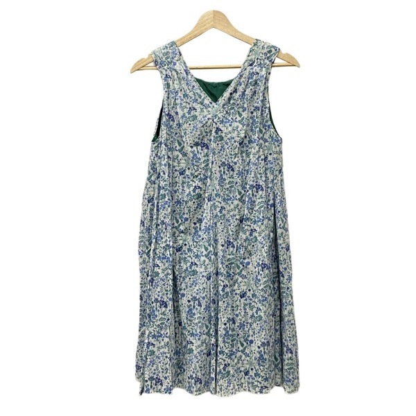 ドゥロワー Drawer サイズ38 M - 白×ブルー×グリーン レディース クルーネック/ノースリーブ/ひざ丈/花柄 ワンピース