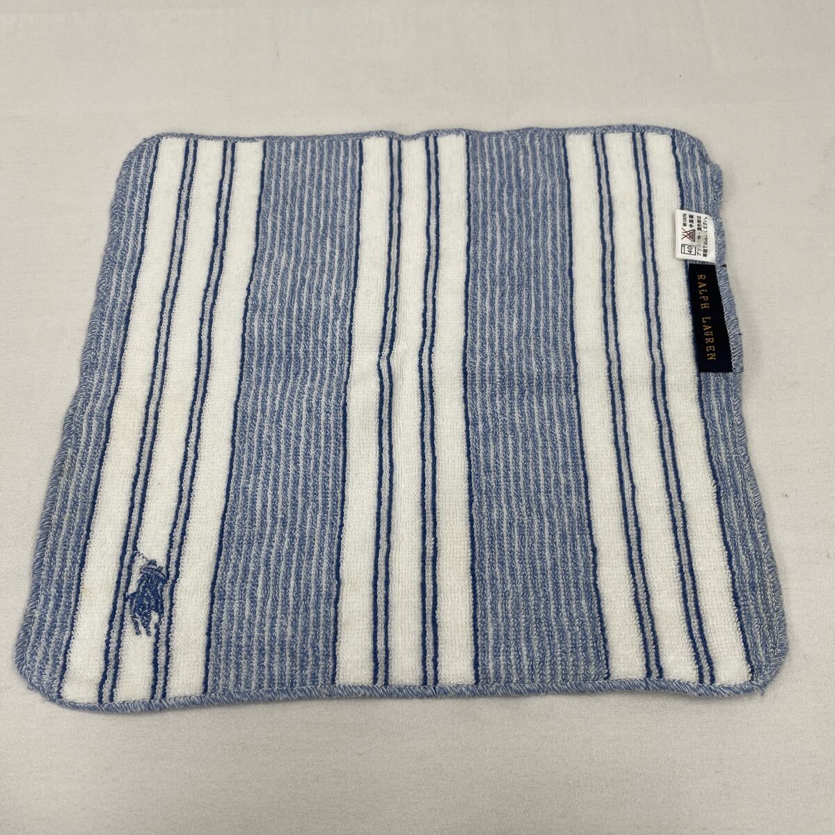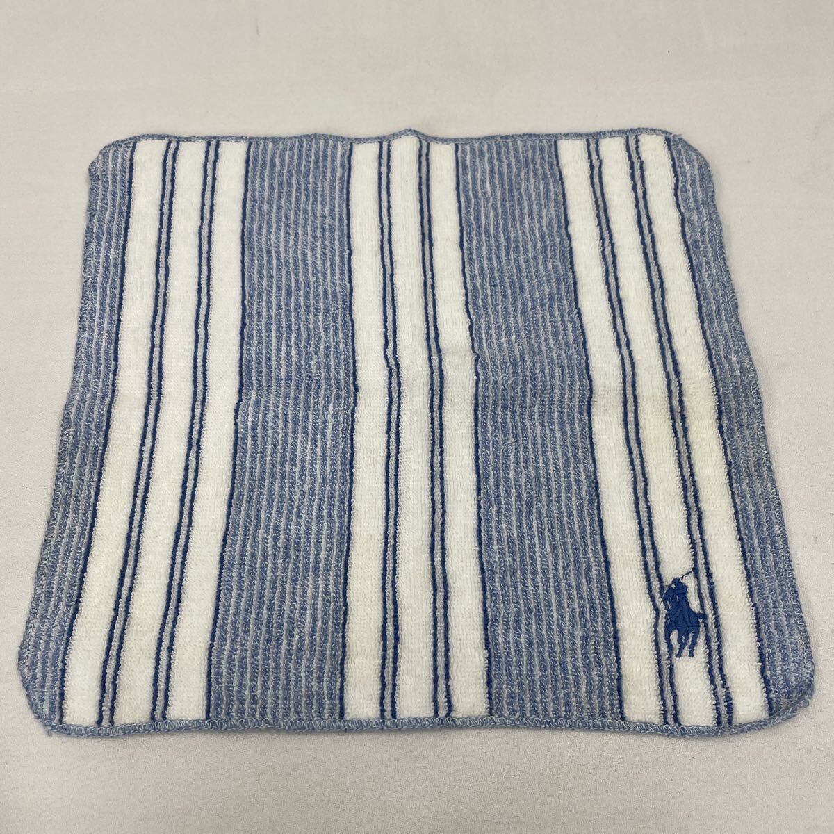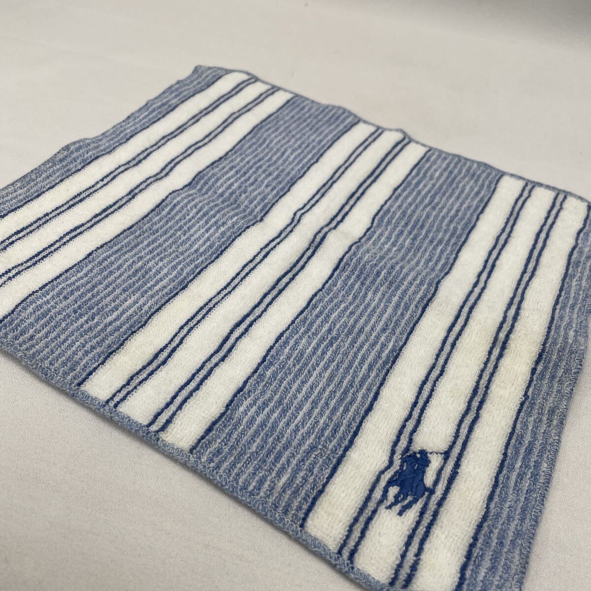 【RALPH LAUREN】ラルフローレン タオルハンカチ ハンドタオル ミニタオル ハンカチ ストライプ 青系 ポニー ロゴ刺繍