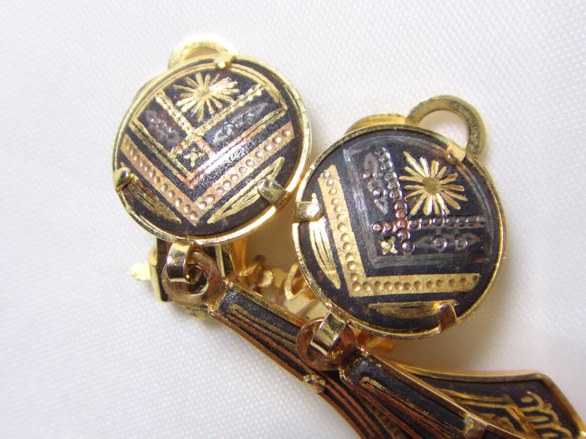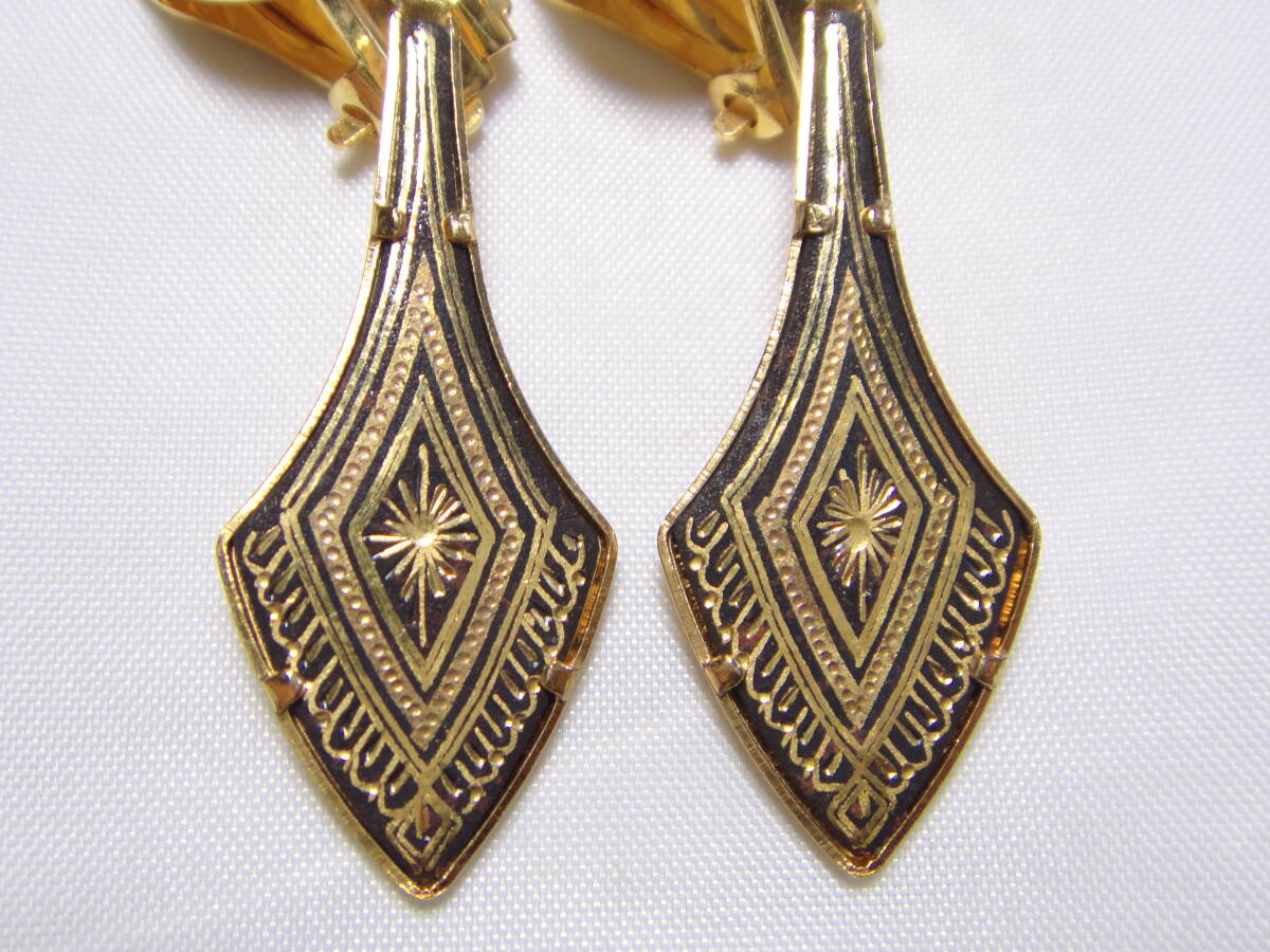 象嵌 イヤリング 幾何学模様 揺れるデザイン レトロ アンティーク ヴィンテージ 工芸品 D535