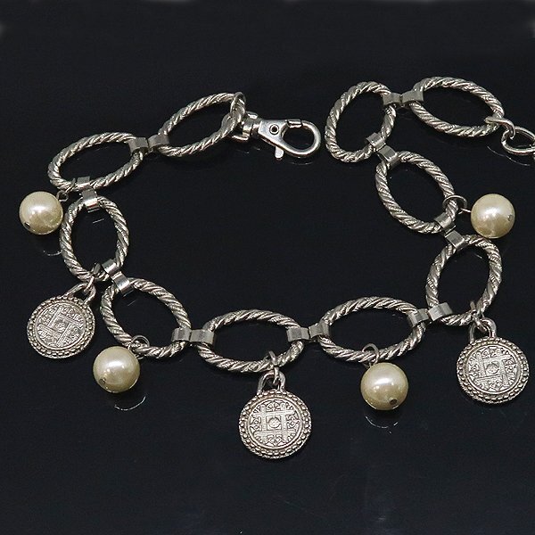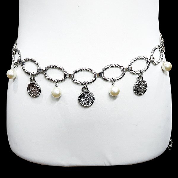 DKG★送料無料★BVA358 ヴィテンージ フェイクパール メダル チェーン ベルト