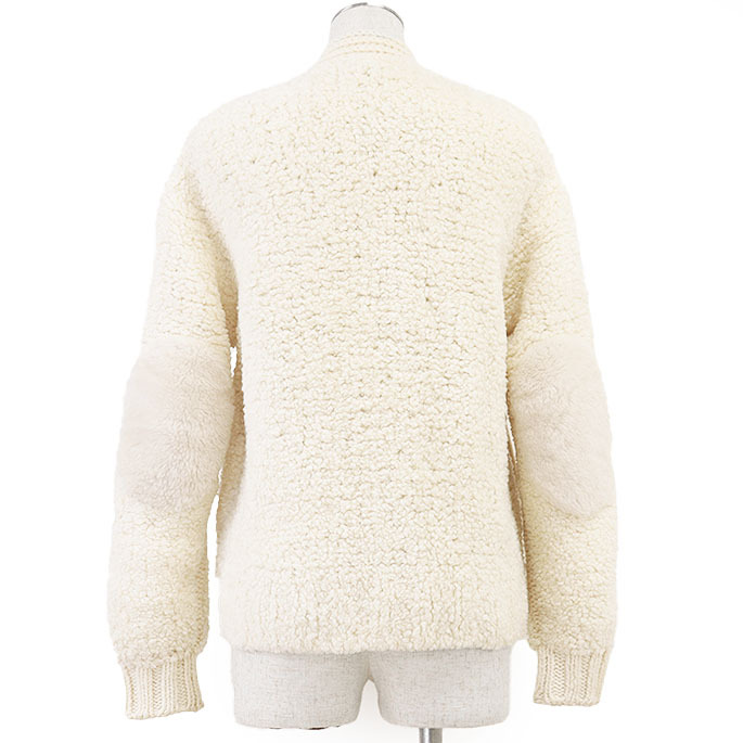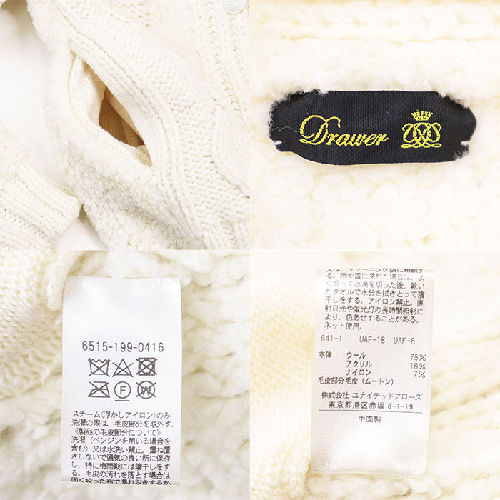 【美品】Drawer ドゥロワー カーディガン ニット ケーブル ロゴ 王冠 ボタン ボア ムートン 長袖 レディース サイズ表記不明 アイボリー