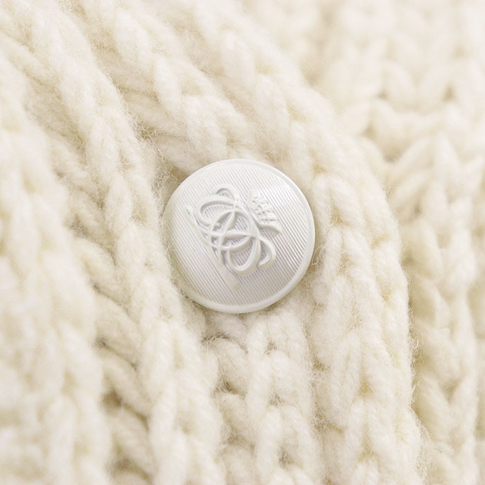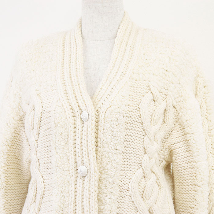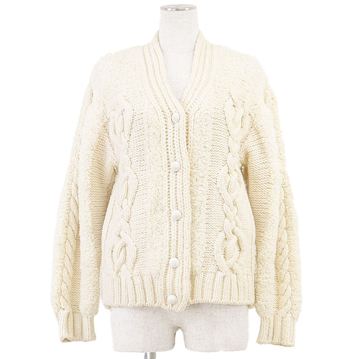 シリーズDrawer ドゥロワー カーディガン ニット ケーブル ロゴ 王冠 ボタン ボア ムートン 長袖 レディース サイズ表記不明 アイボリー