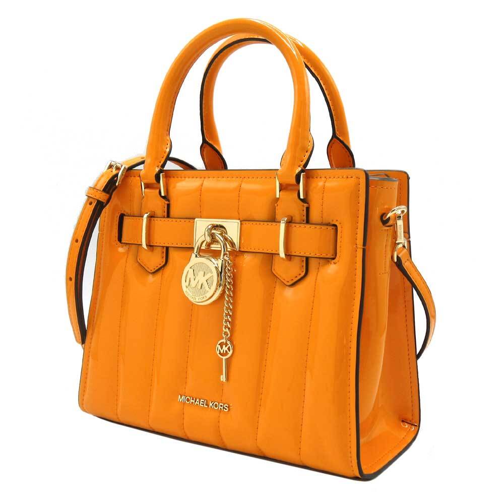 ■マイケル・コース バッグ ハンドバッグ MICHAEL KORS ハミルトン スモール パテント サッチェル 2WAY 斜め掛け 35T5GHMS1A POP ORANGE (ポップオレンジ) アウトレット レディース hamilton small patent satchel