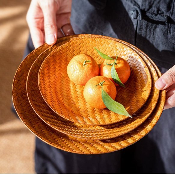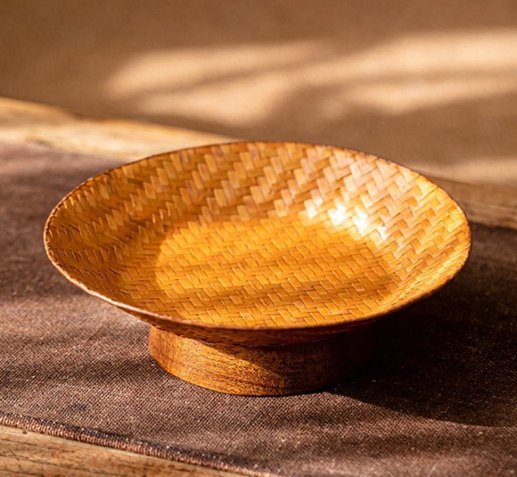 宋式茶道茶点盤婚儀菓子小盆置物竹編み小提籃