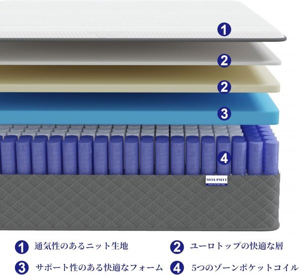 【肌触り生地&優れた通気性】:表面には通気性・吸湿・発散性のあるニット生地で作られ、肌触りいい、通気性と伸縮性いいし、かく汗を吸収し、マットレスへの汚れの浸透を防いでくれます。お客様のマットレスはずっとドライとコンフォートを保つことができます。さらに、専用の抗菌・防臭・通気性抜群のマットレス生地であなたの快適な睡眠をサポートします。