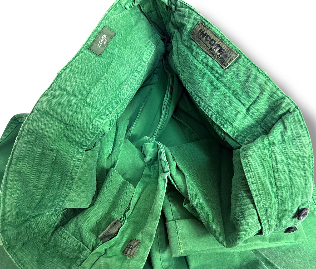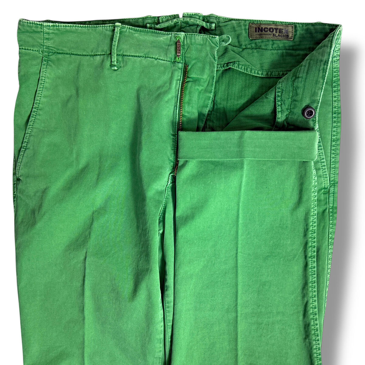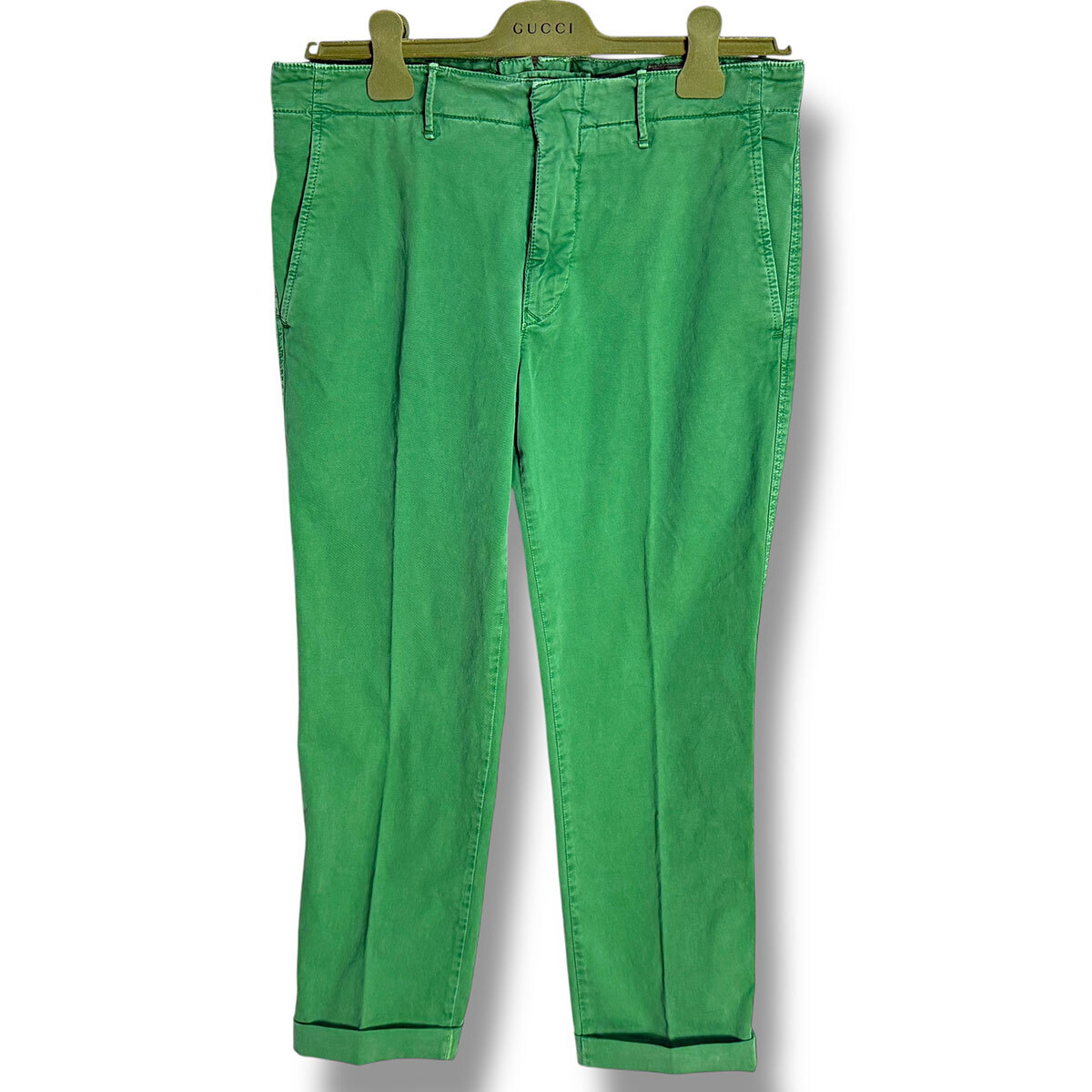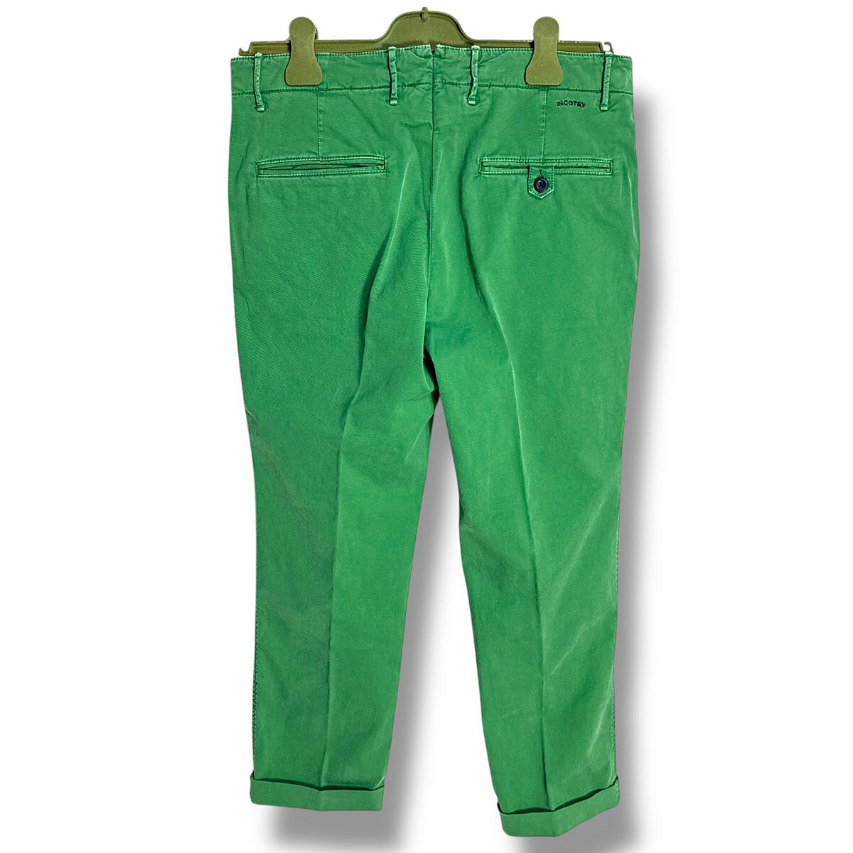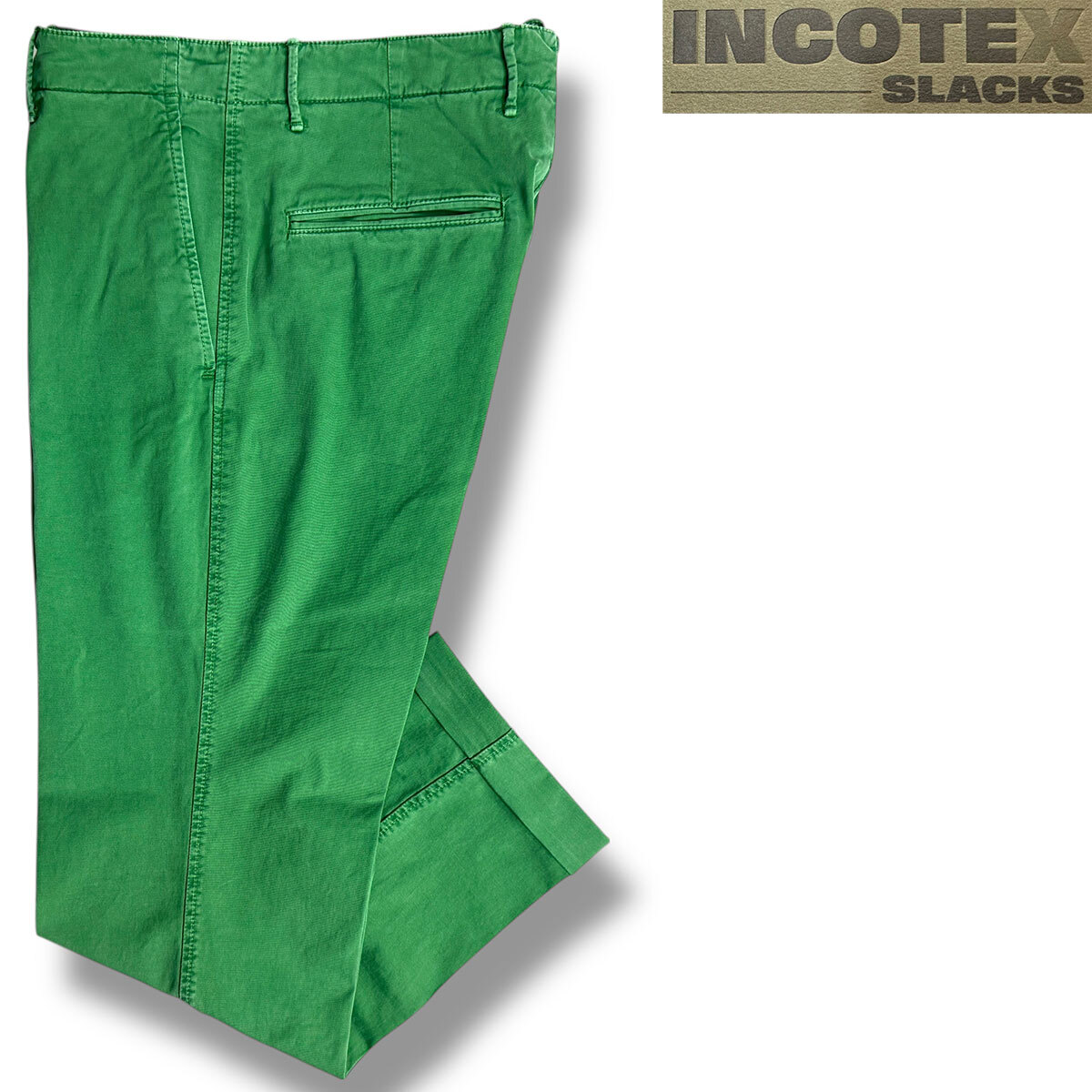 J7212 美品 インコテックススラックス 11X150 100型 現行 ギャバジン ストレッチ ノープリーツパンツ グリーン 32 INCOTEX SLACKS