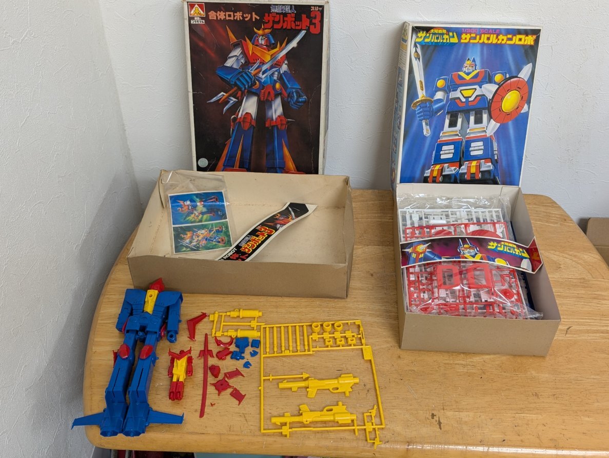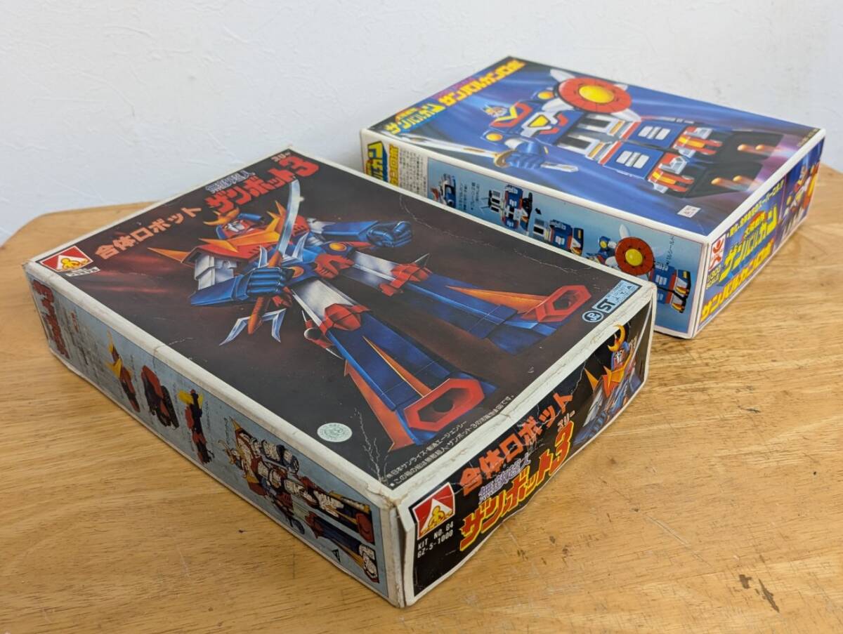 バンダイ1/300 サンバルカンロボ、旧アオシマ(約20cm)ザンボット3 組済み の2個セットです。箱は汚れ、へこみ、キズがあります。袋部品未開封と組済みです。欠品があってもご容赦下さい。興味ある方いかがですか。