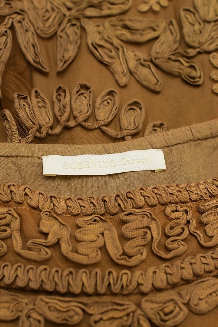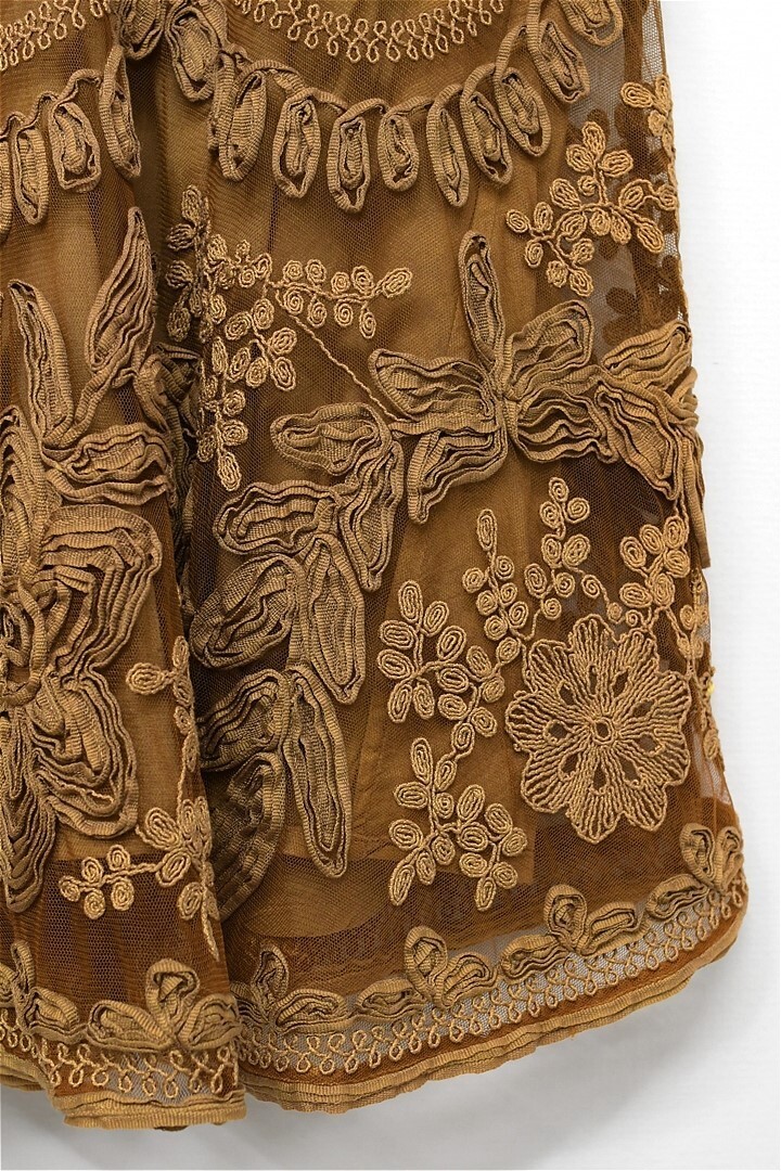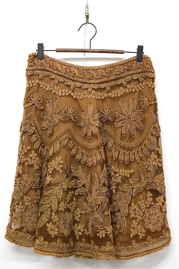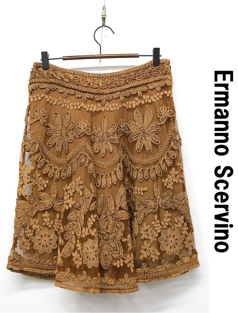 H519/Scervino Street Ermanno Scervino エルマノシェルビーノ ひざ丈フレアスカート レース 総柄 花柄 46 XL ブラウン