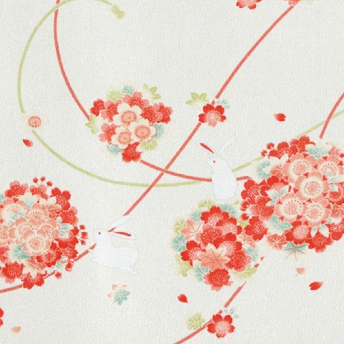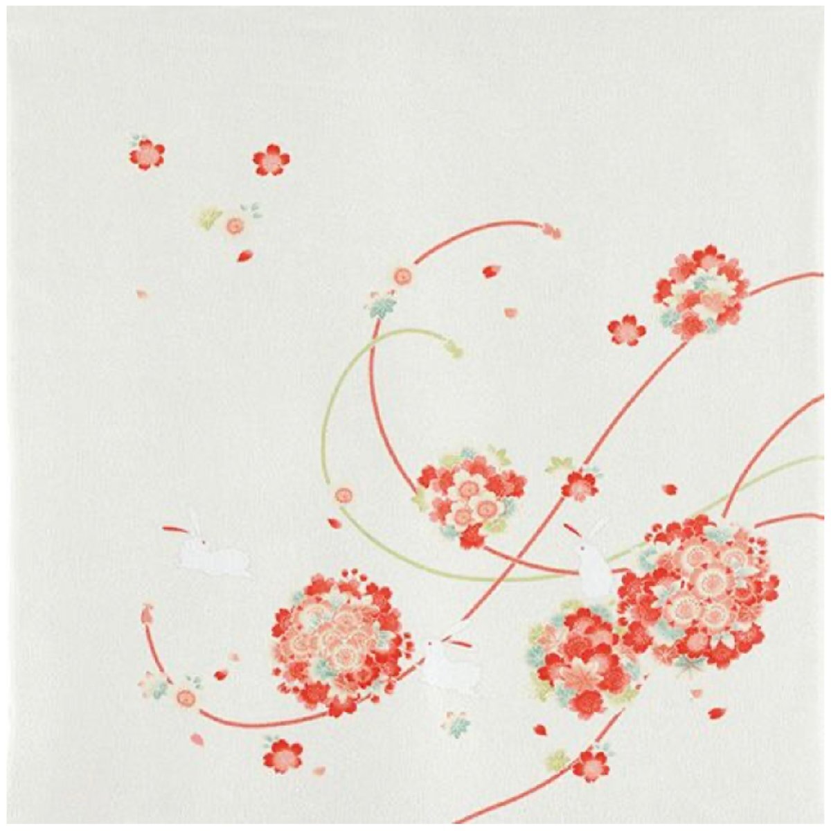 二巾 レーヨンちりめん こよみ #ふろしき「花まりうさぎ クリーム」菓子折り、ワイン包みに M25-80120-205