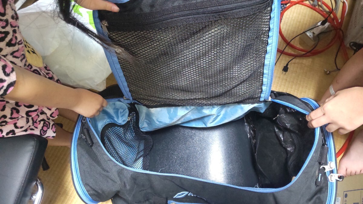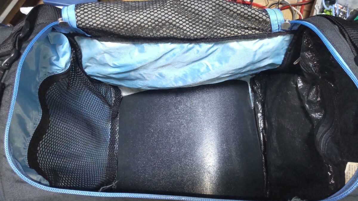 注意事項 :表面についているゴムが伸び切ってしまっています。バッグの全体サイズ(素人採寸)は横:67cm 縦:36cm 幅:30cm 両横にマチ10cm位の小物入れもあります。中敷きもあります。