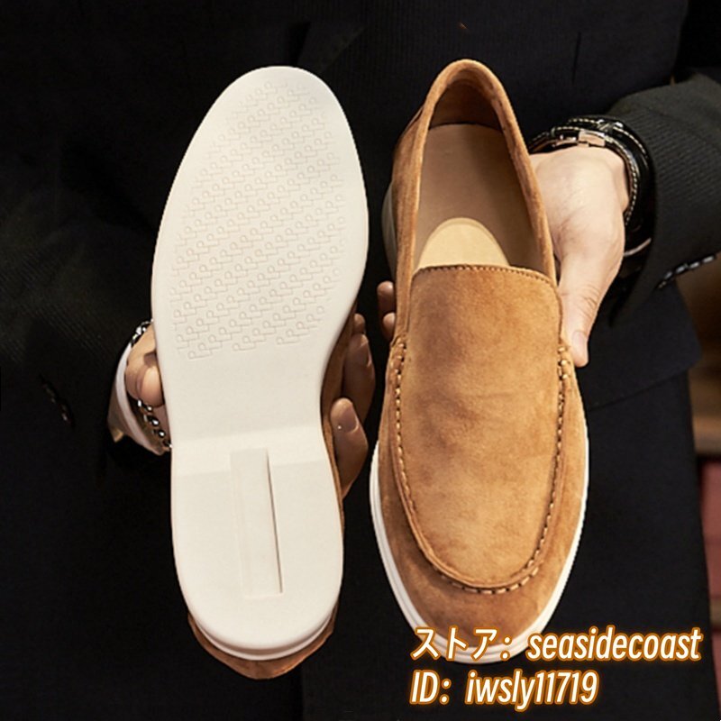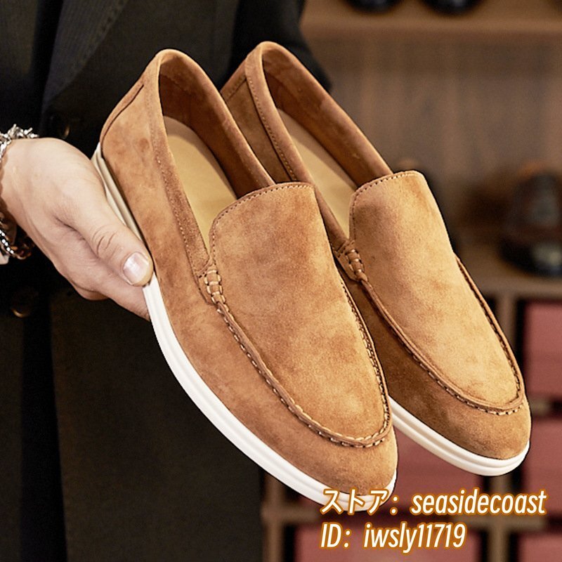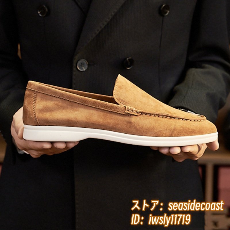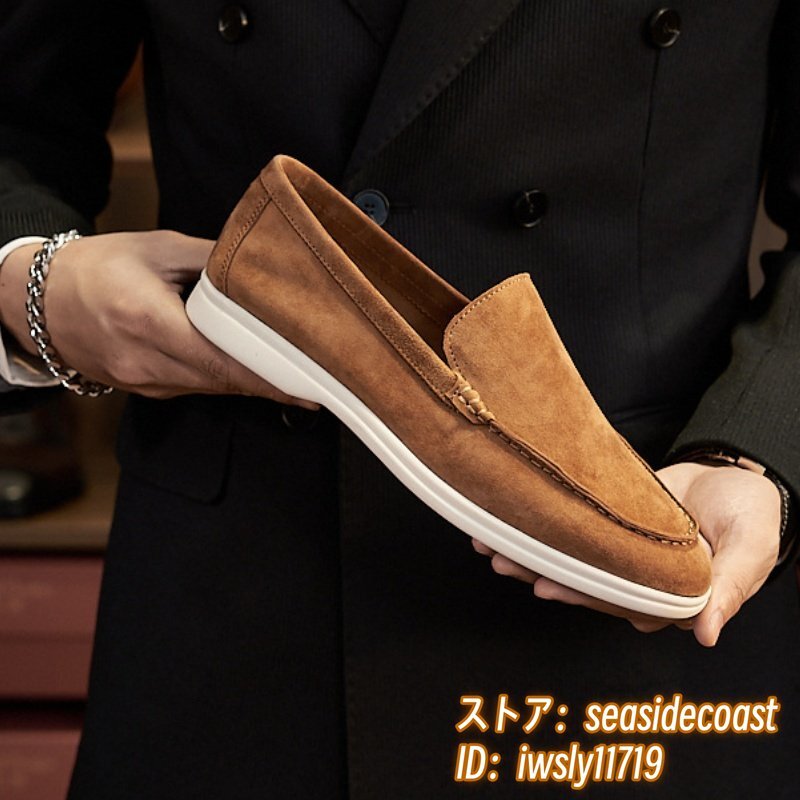 超希少■スエード革 ローファー 本革 スリッポン 職人手作り ドライビングシューズ ビジネスシューズ 牛革 革靴 紳士靴 ブラウン 28.0cm
